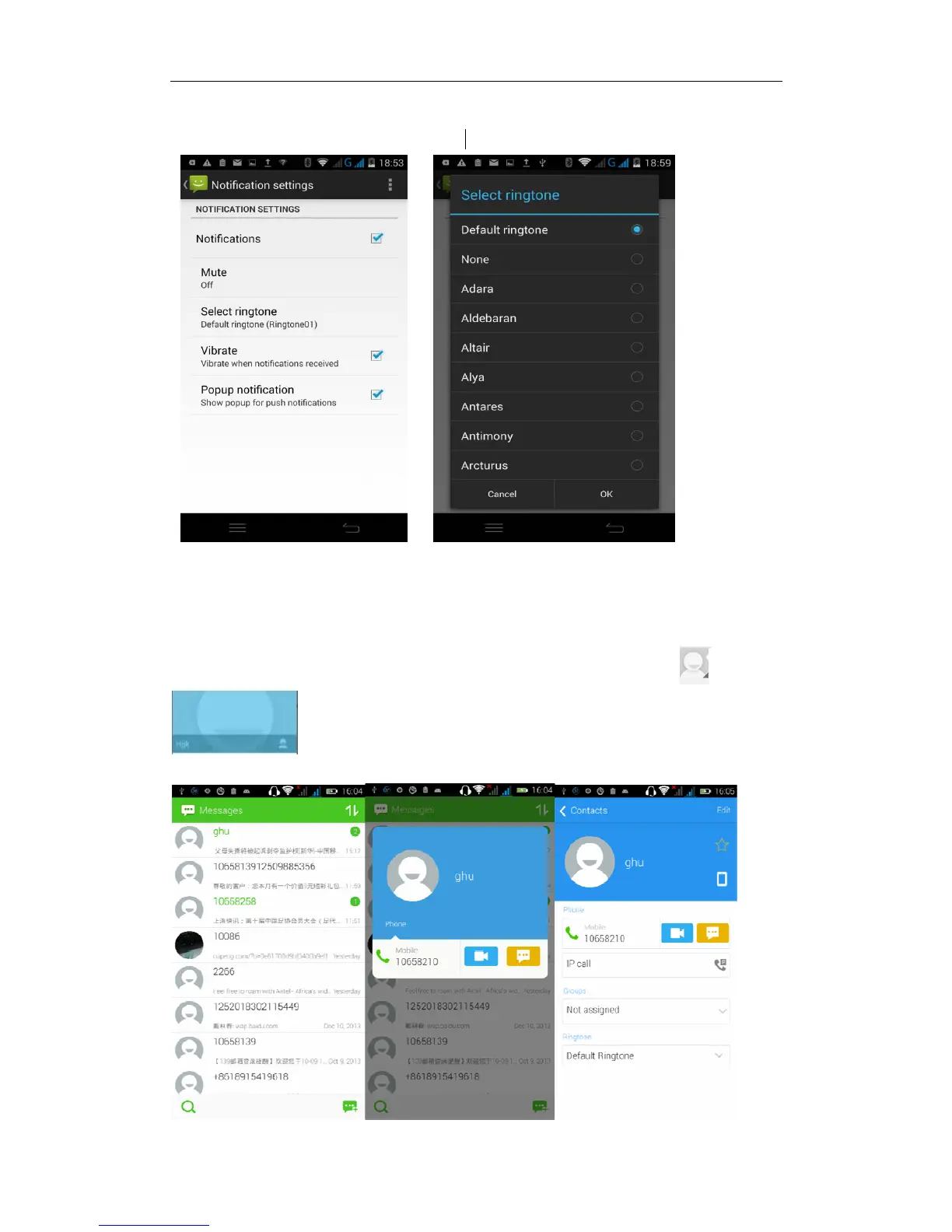 “notifications” -- “select ringtone” .Then choose the desired ringtone (the