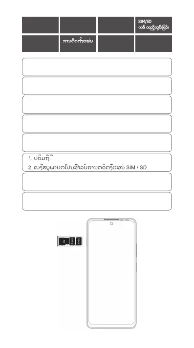2. SIM / SD ကတ္ ထည့္သြင္းမႈအတြက္ ေအာက္ပါ ႐ုပ္ပုံကို ကိုးကားပါ။