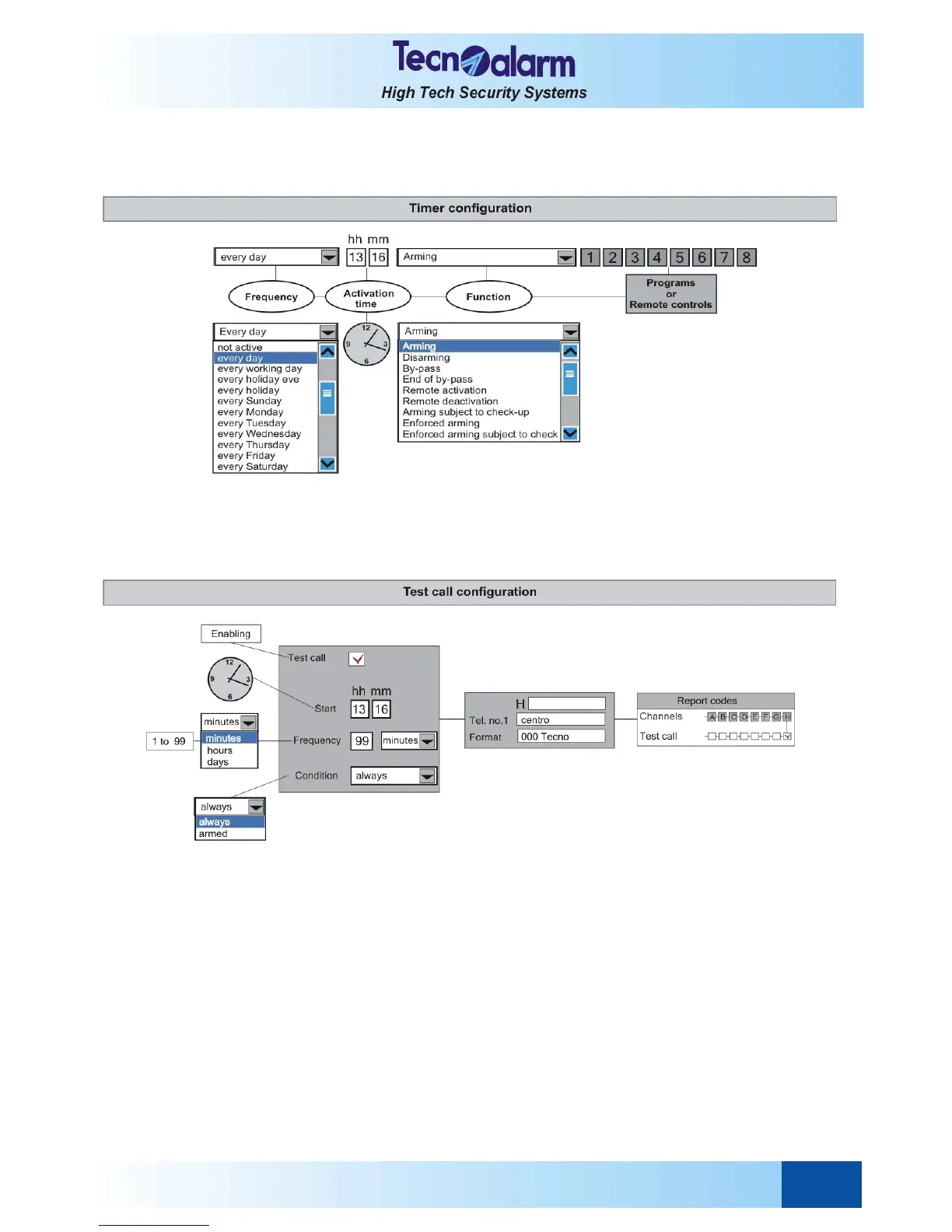 The following schemes evidence the steps of configuration of the timers, test call, test call server and access periods.