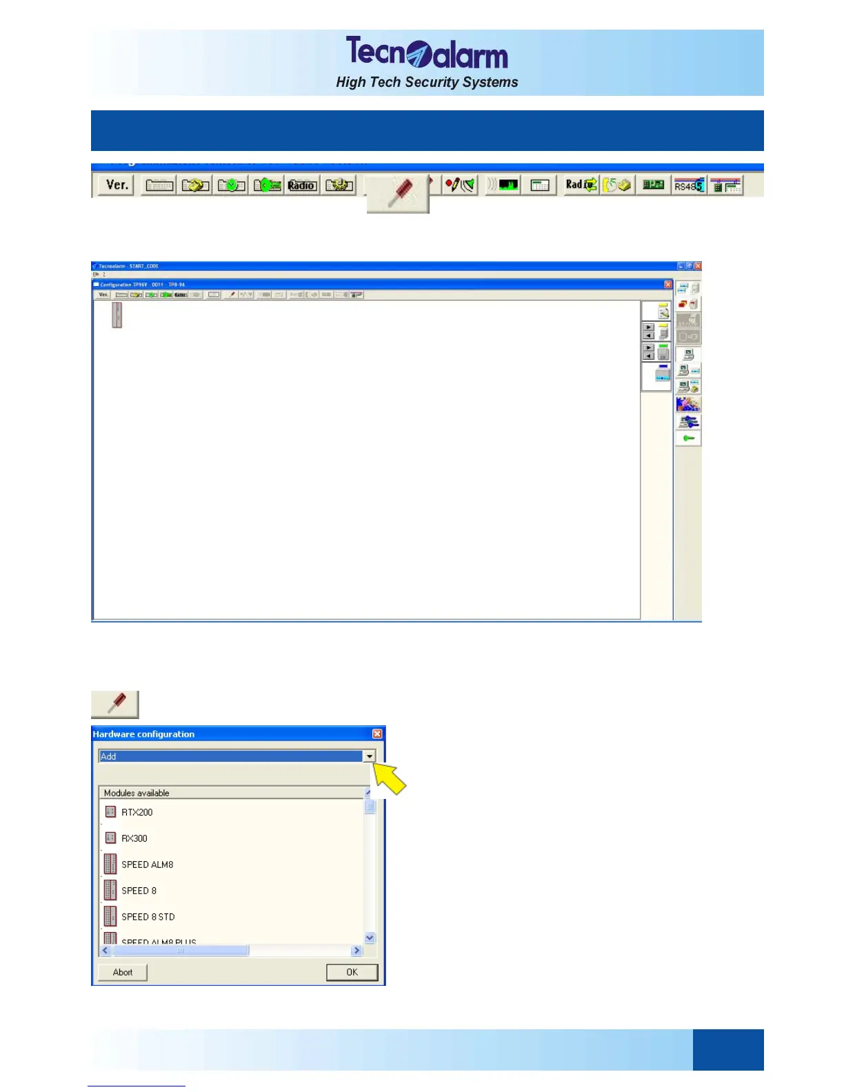 Permits the hardware configuration of the control panel, i.e. addition or deletion of the hardware modules to/of the