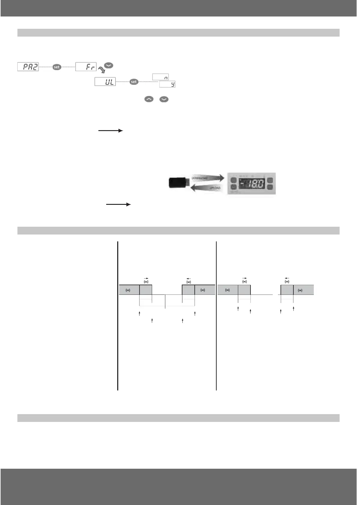 Dopo aver inserito la password “PA2”, scorrere con i tasti e fi no a visualizzare la funzione desiderata (es. UL). Premere il tasto e l’upload