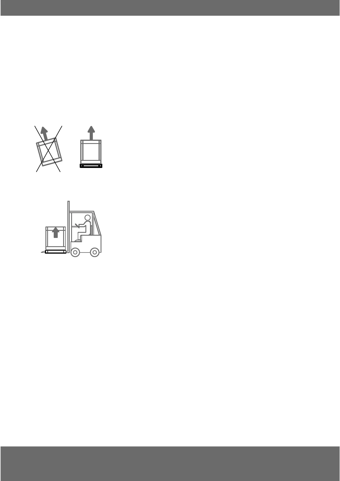 The unloading/loading procedures should be executed by pallet-jack or by forklift