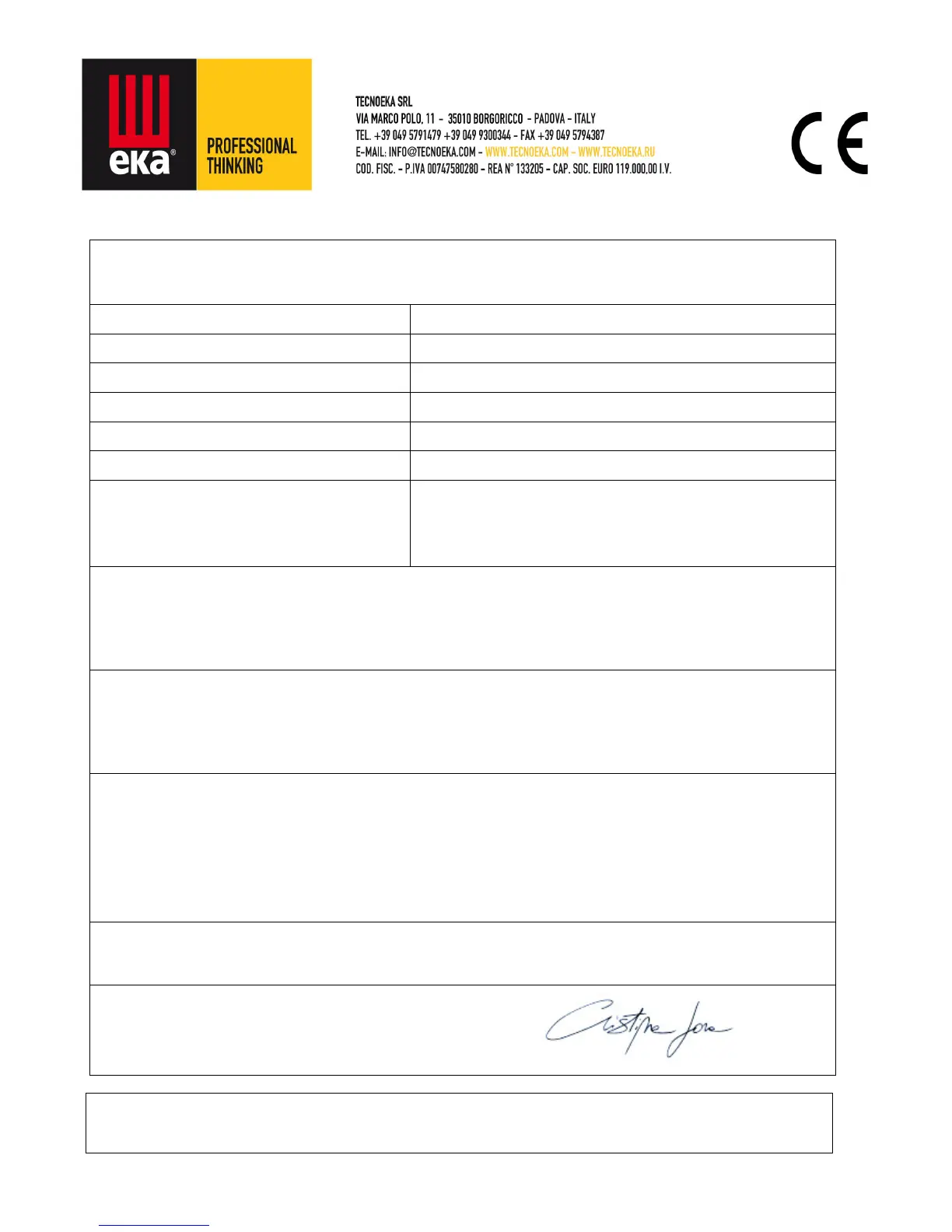 TECNOEKA Srl declares that the mentioned above products meet the following harmonised