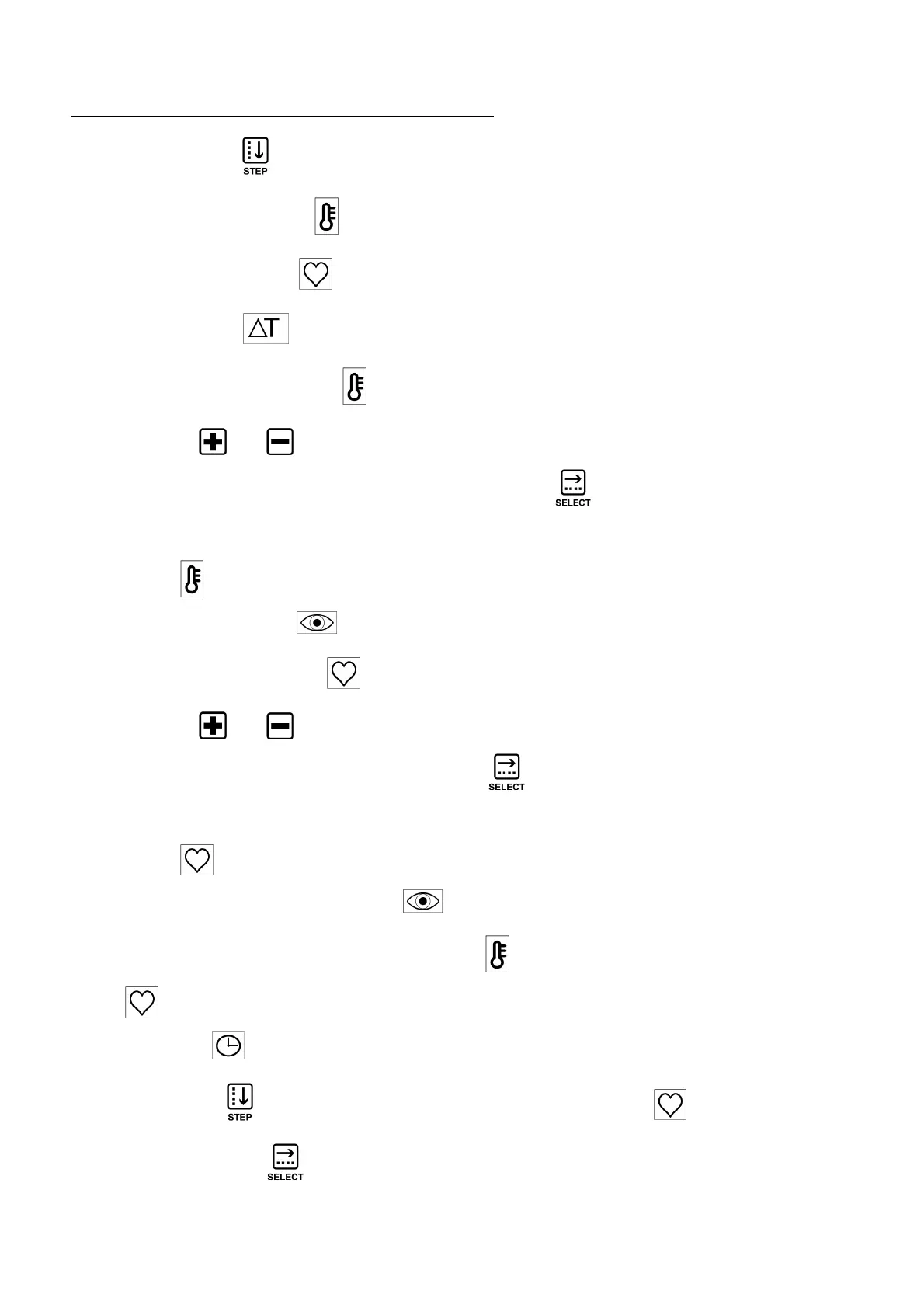 Using the "STEP" key, you can set:
