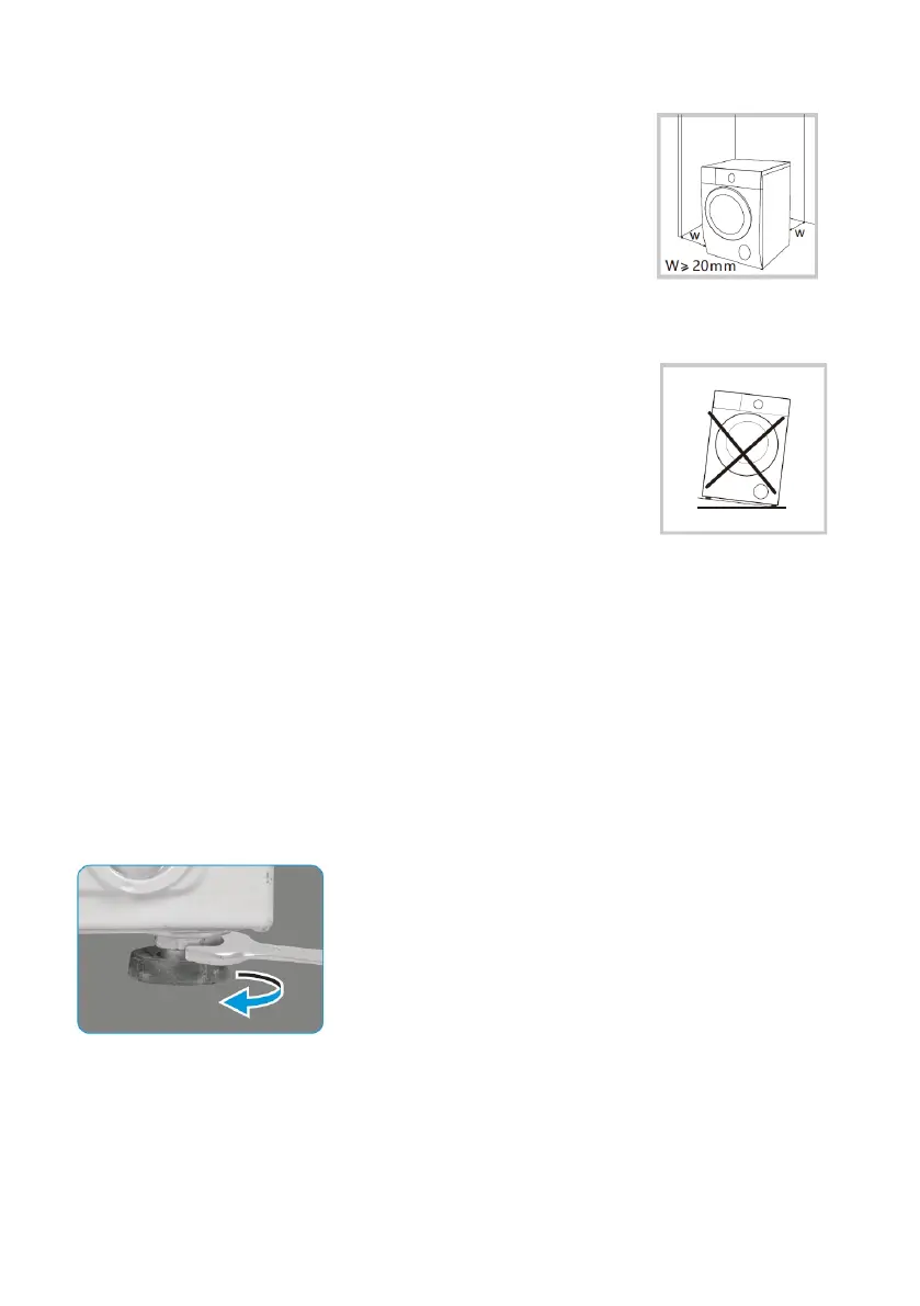 Door de wasmachine goed waterpas te stellen, worden overmatig lawaai en trillingen voorkomen.