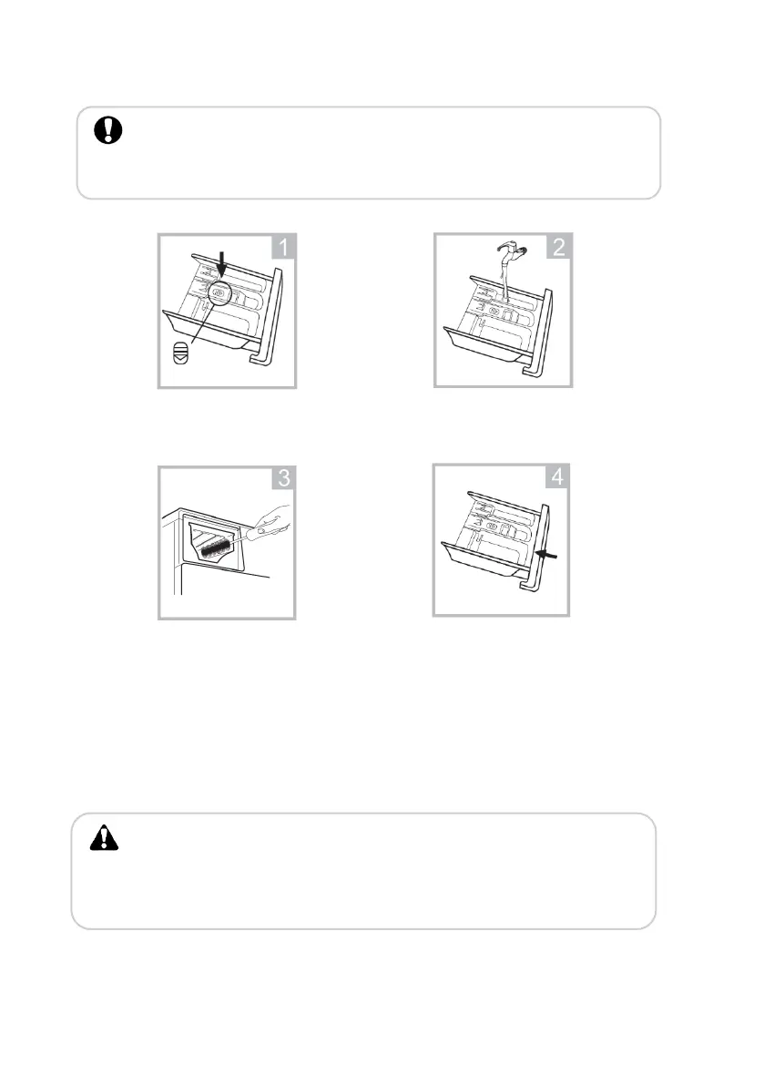 Het wordt aanbevolen om de wasmiddellade van tijd tot tijd schoon te maken.