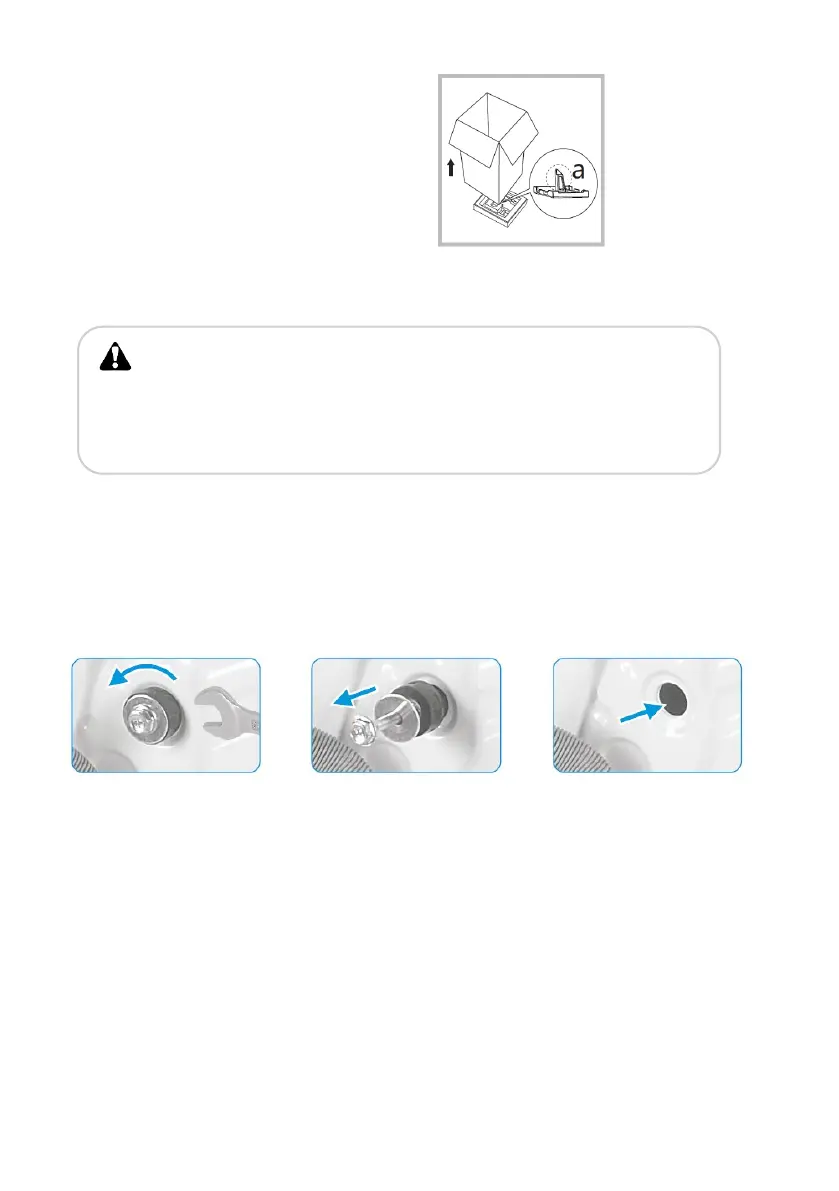 Avant d’utiliser la machine à laver, enlevez les boulons ainsi que les bouchons en caoutchouc.