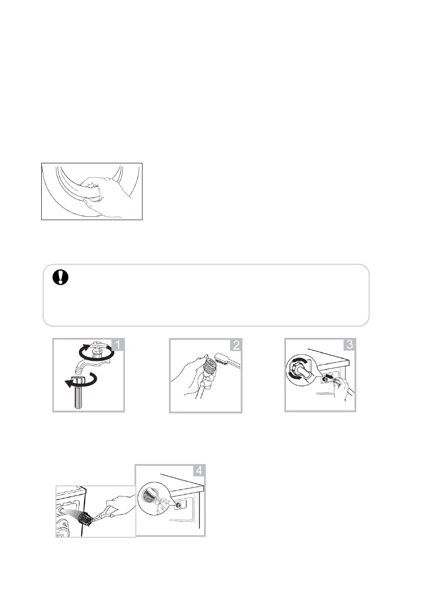 Reinstall the filter to the water inlet and reconnect the water supply hose.