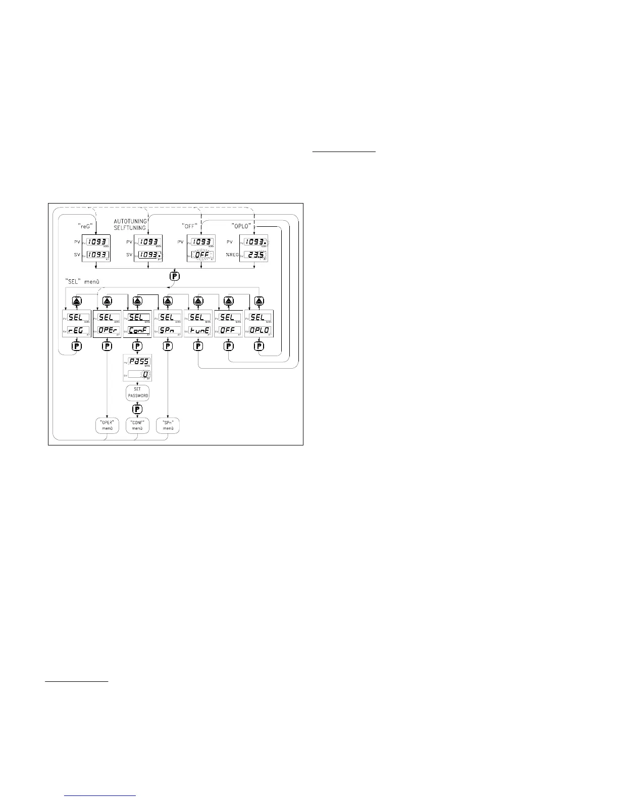"SPn" : Selection menu of the active Set point : contains the selections of