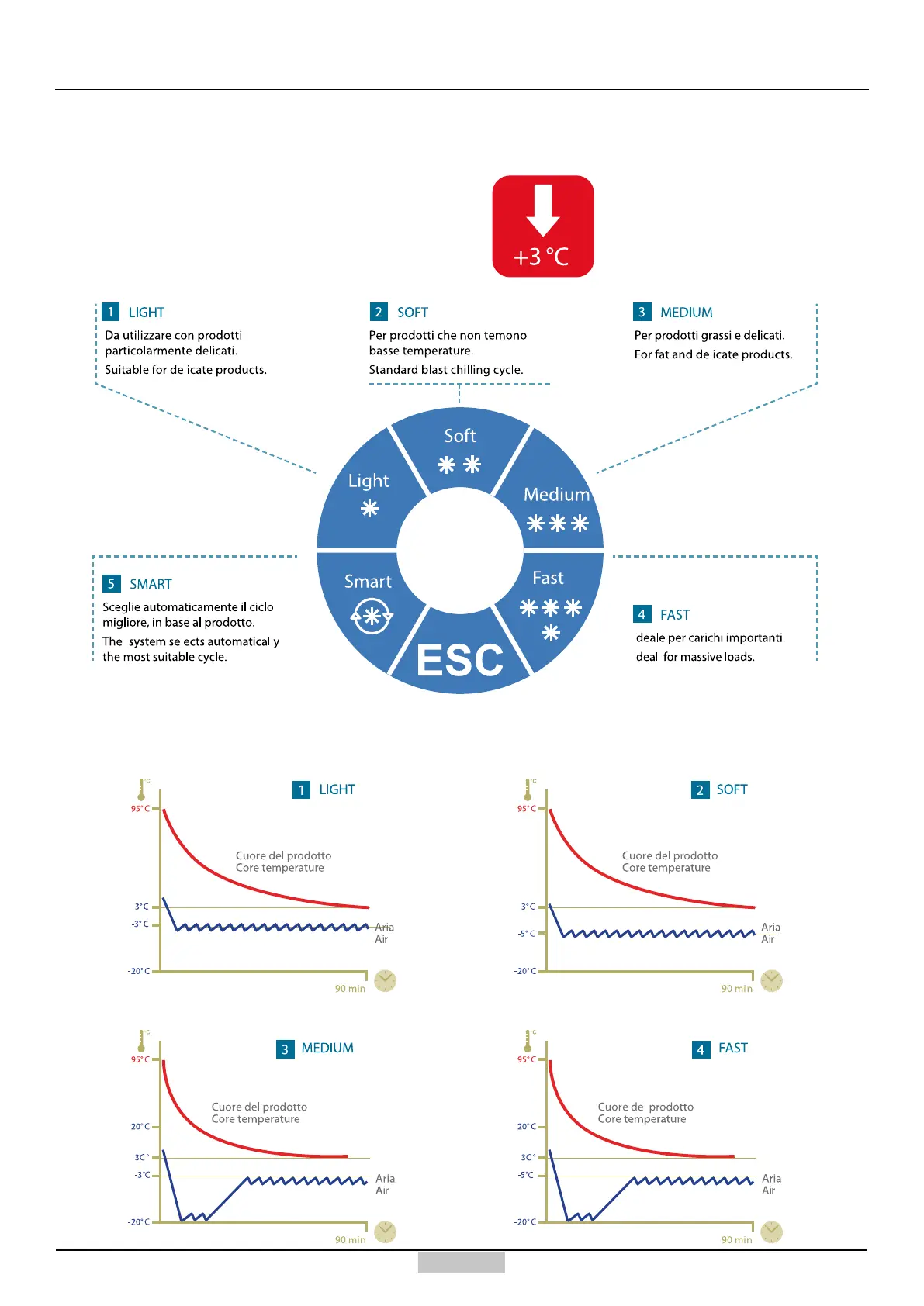 The Positive chilling cycle is set to bring the temperature of a food item under 10°C, normally to +3°C. Hereinafter, we