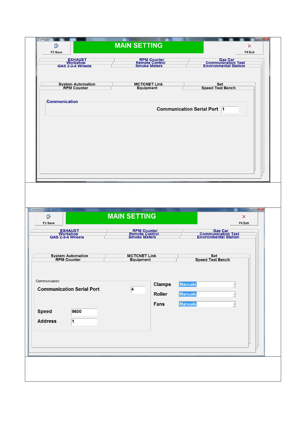 Page de configuration du banc de vitesse pour les tests relatifs aux 2-3 4