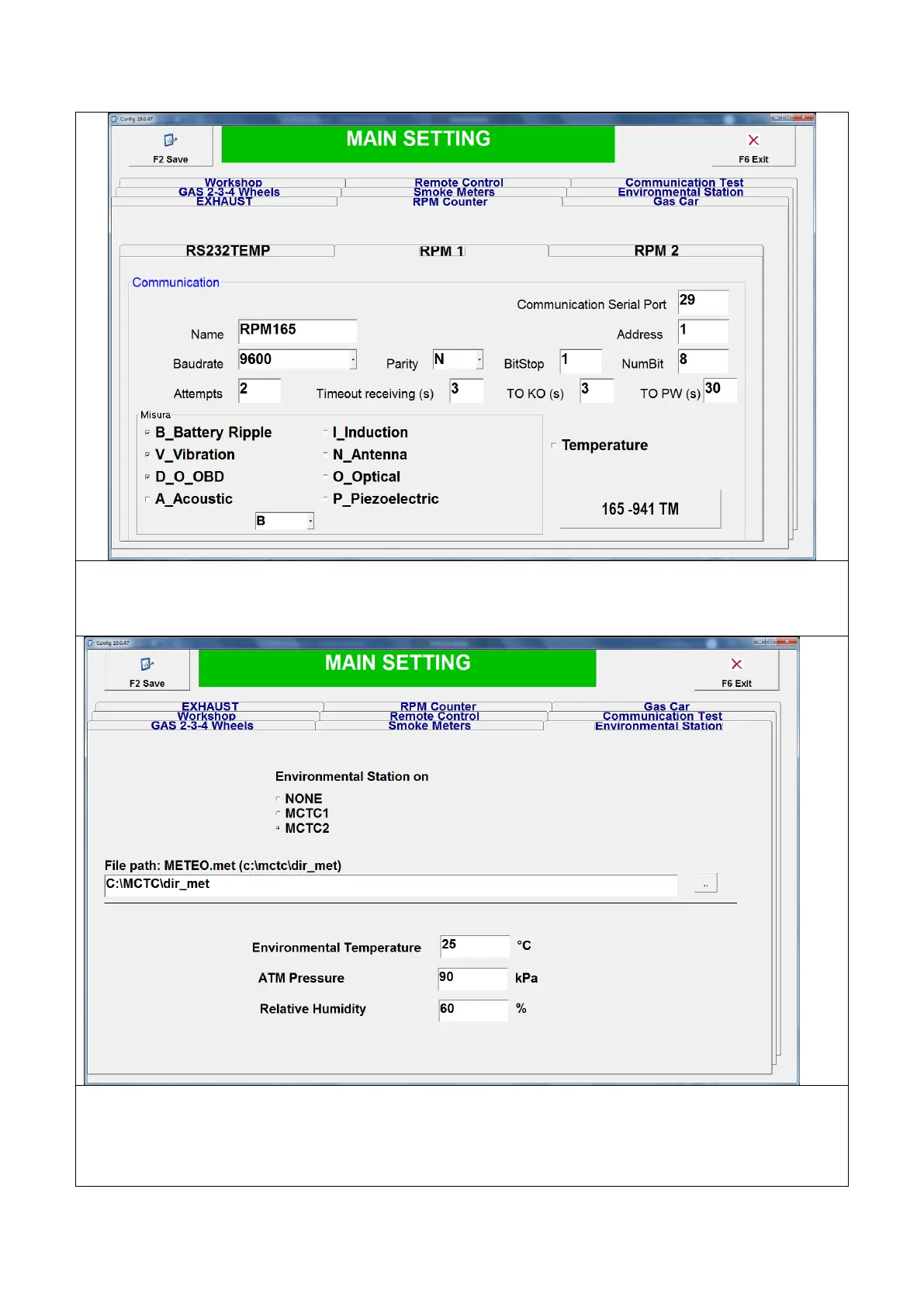 Page pour configurer le compte-tours Rpm Counter et le port Com pour la