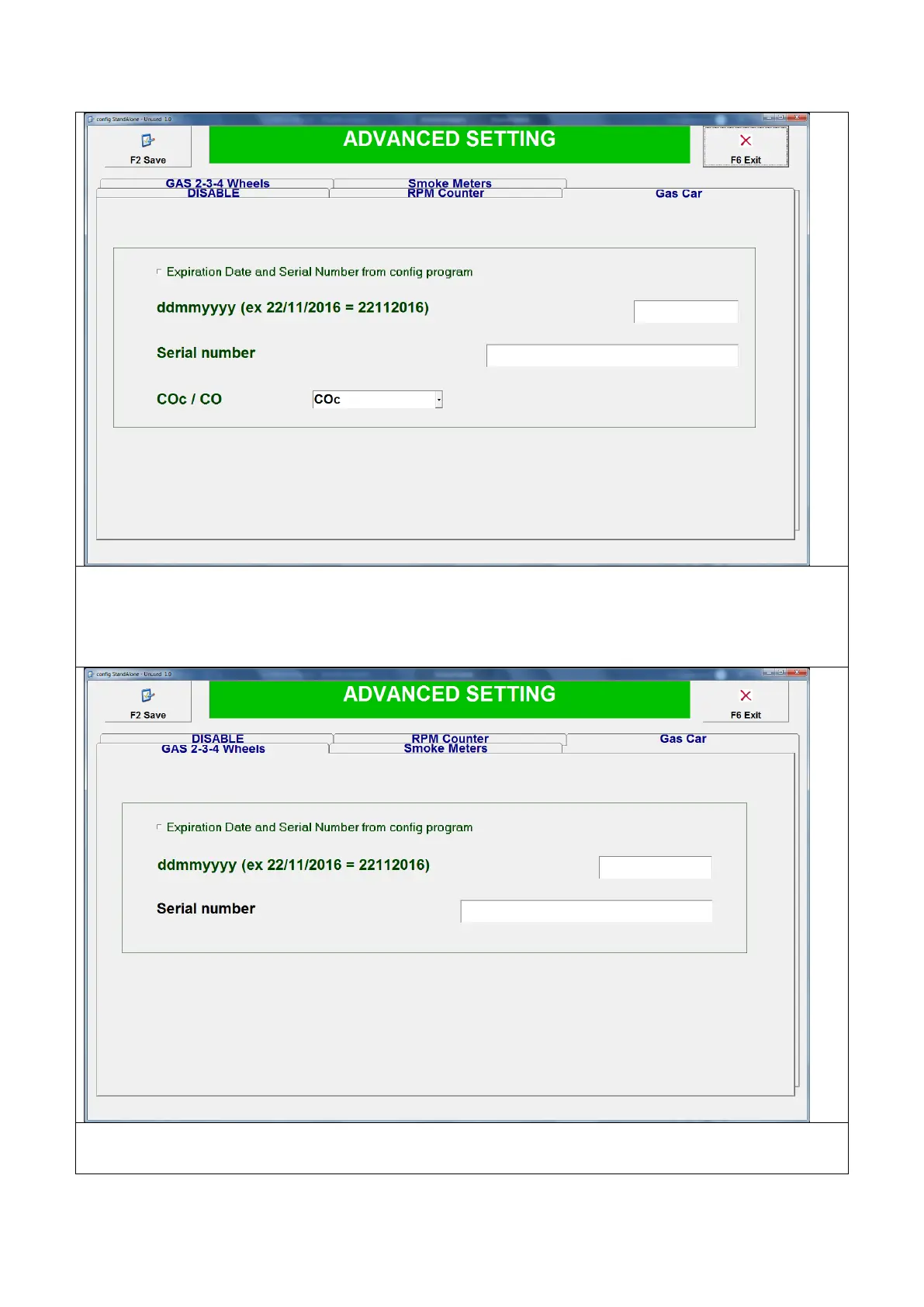 Page utilisée pour saisir la date d’expiration et le numéro de série appropriés