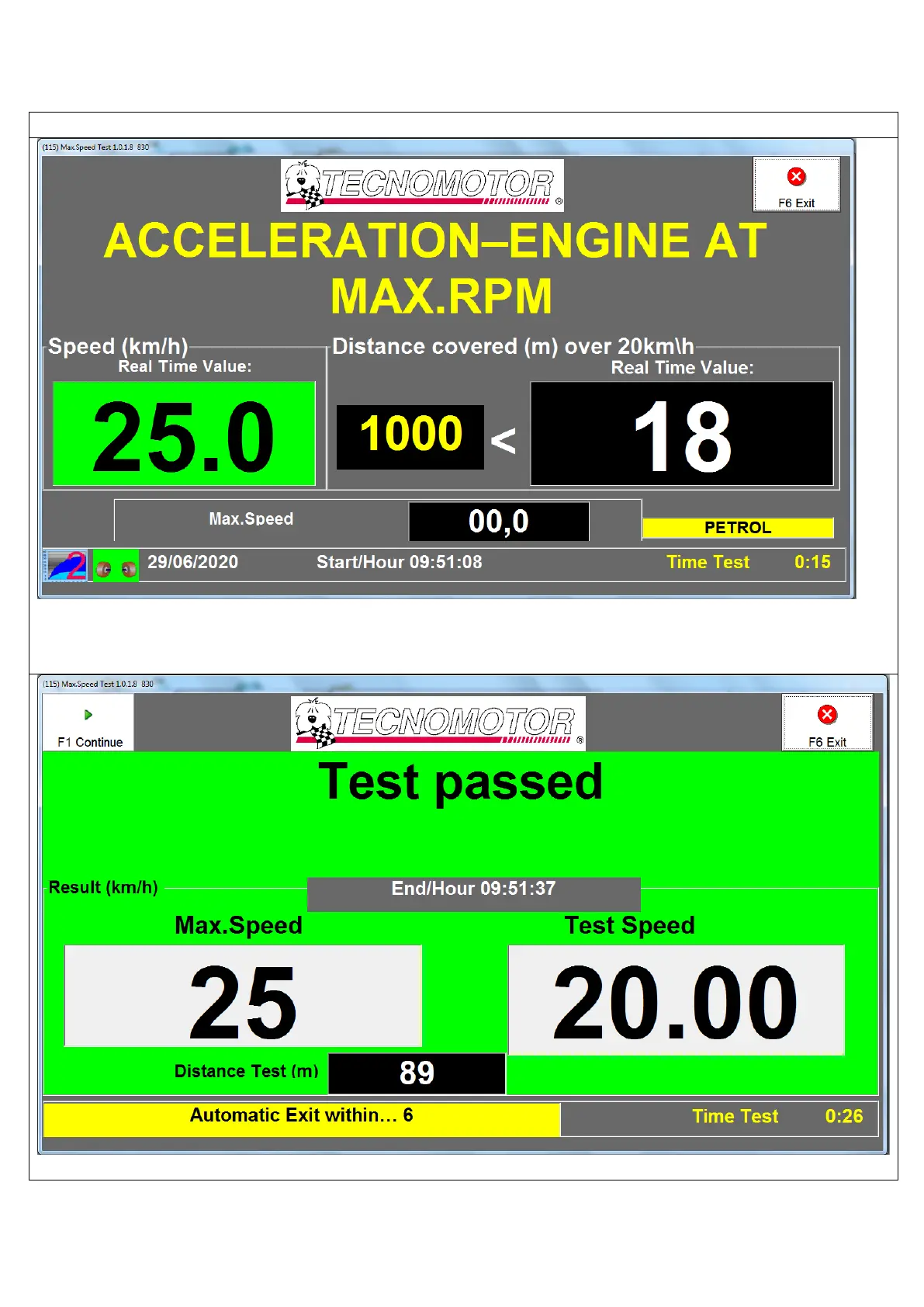 Appuyer sur « F1 Continue » pour continuer le test.
