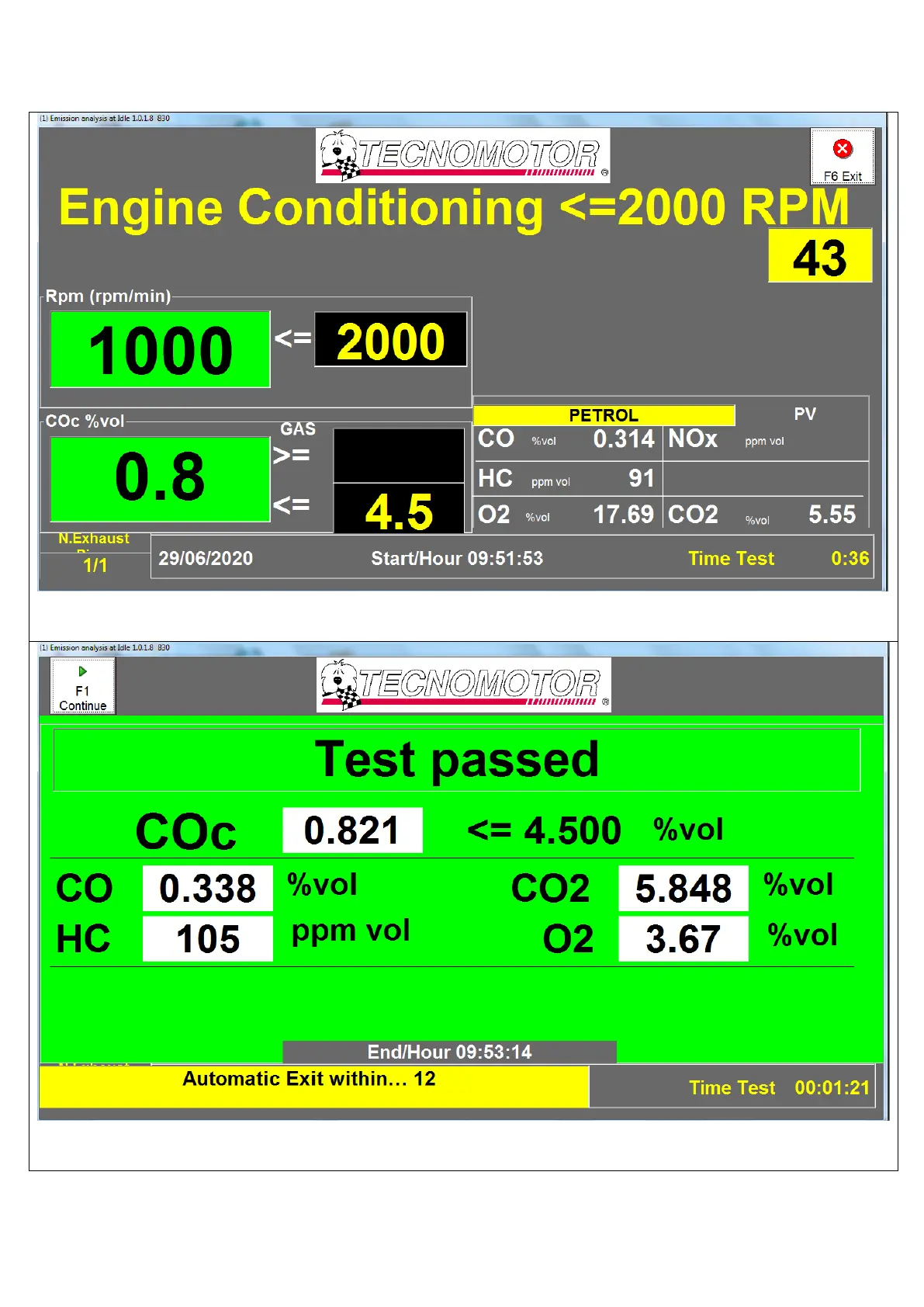 Exécution du test des émissions.