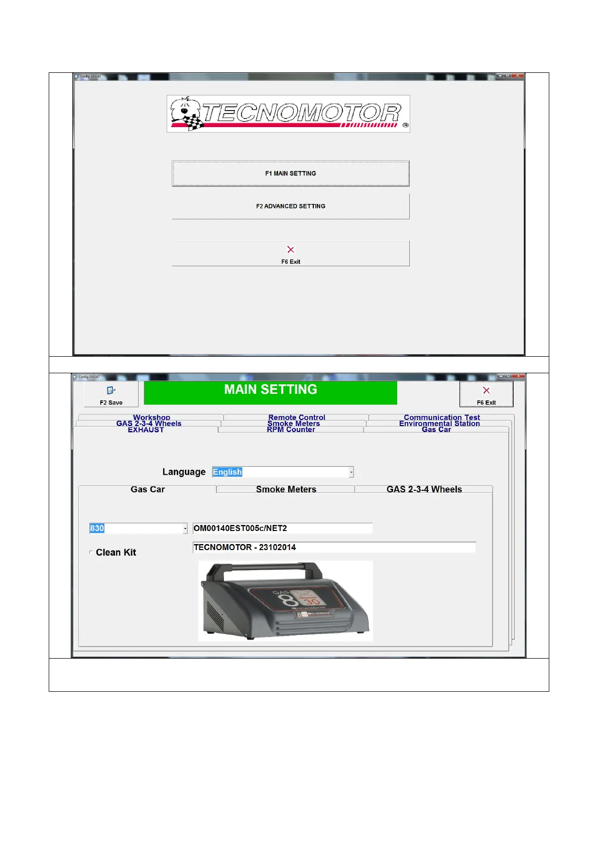 Door op F1 MAIN SETTING te drukken, verschijnt het volgende scherm