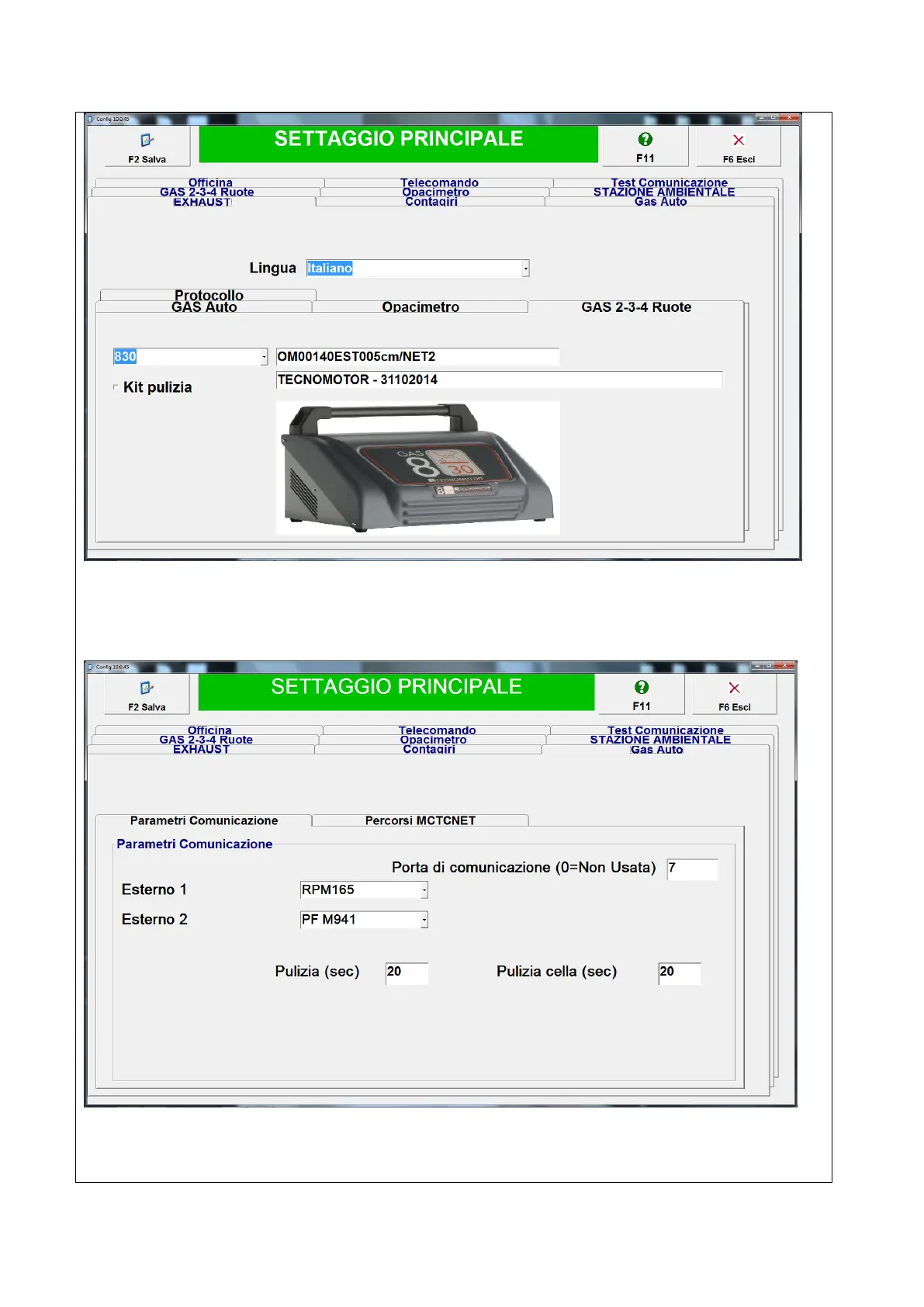 Pagina di configurazione dellanalizzatore gas auto e della porta Com di