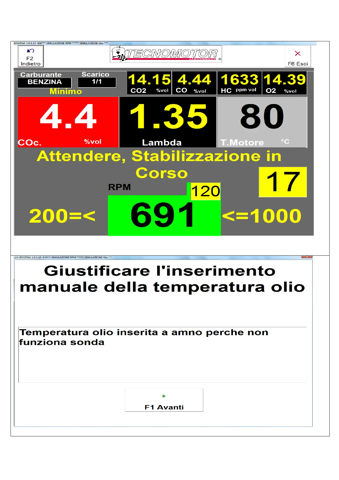 Aspettare la fine della stabilizzazione e analisi del gas di scarico.