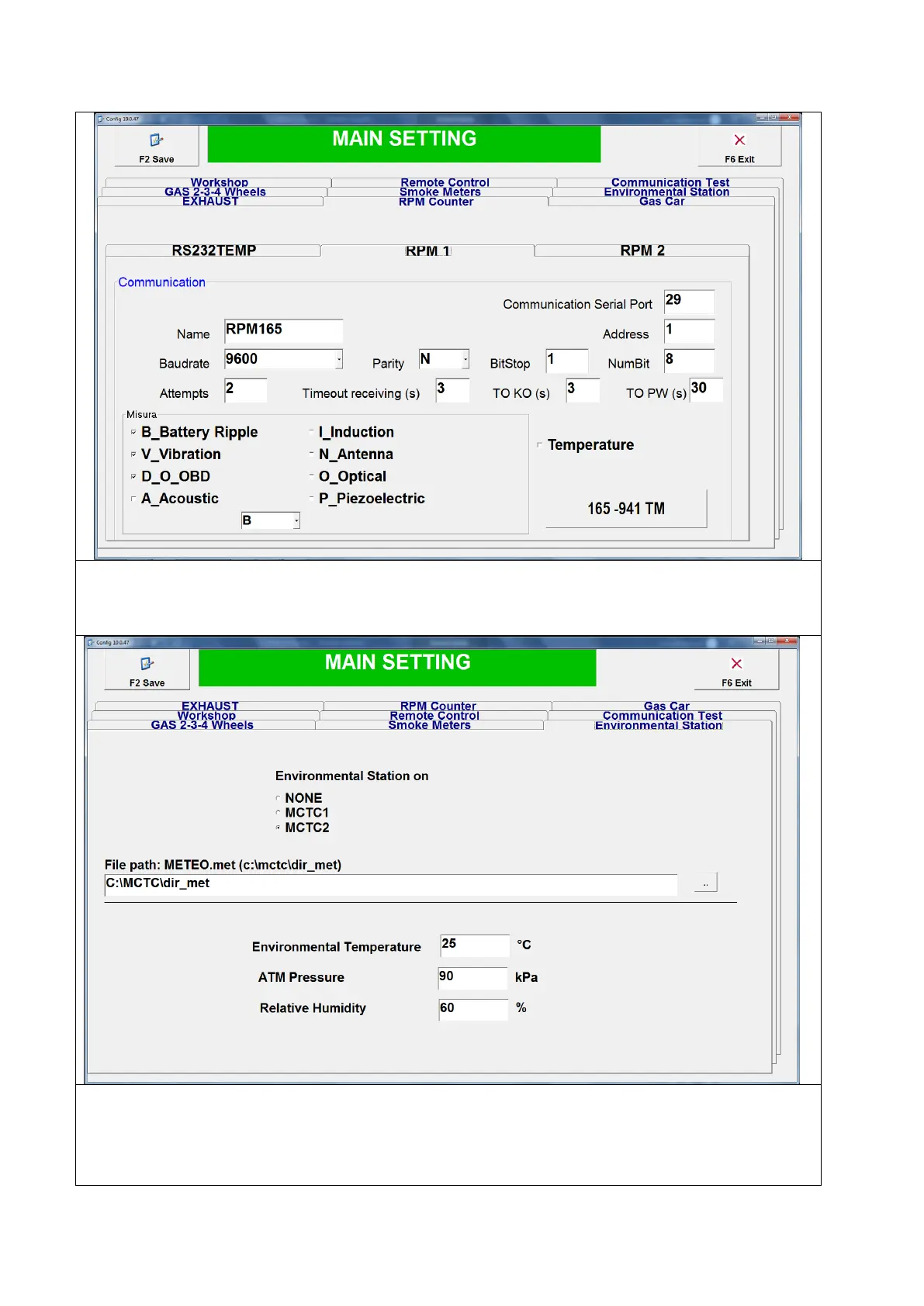 Strona konfiguracji obrotomierza Rpm Counter oraz port komunikacji z
