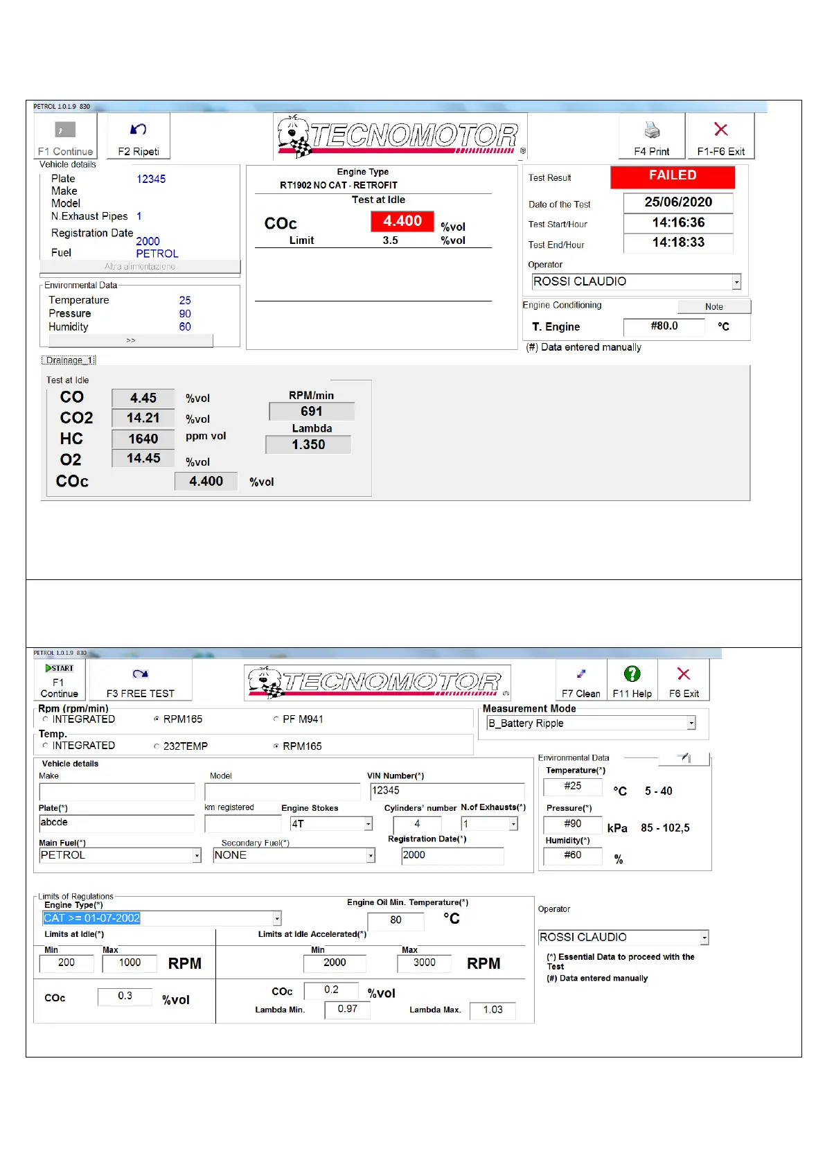 PRZYKŁAD PRÓBY NA BIEGU JAŁOWYM I PRZY WYSOKICH OBROTACH BIEGU