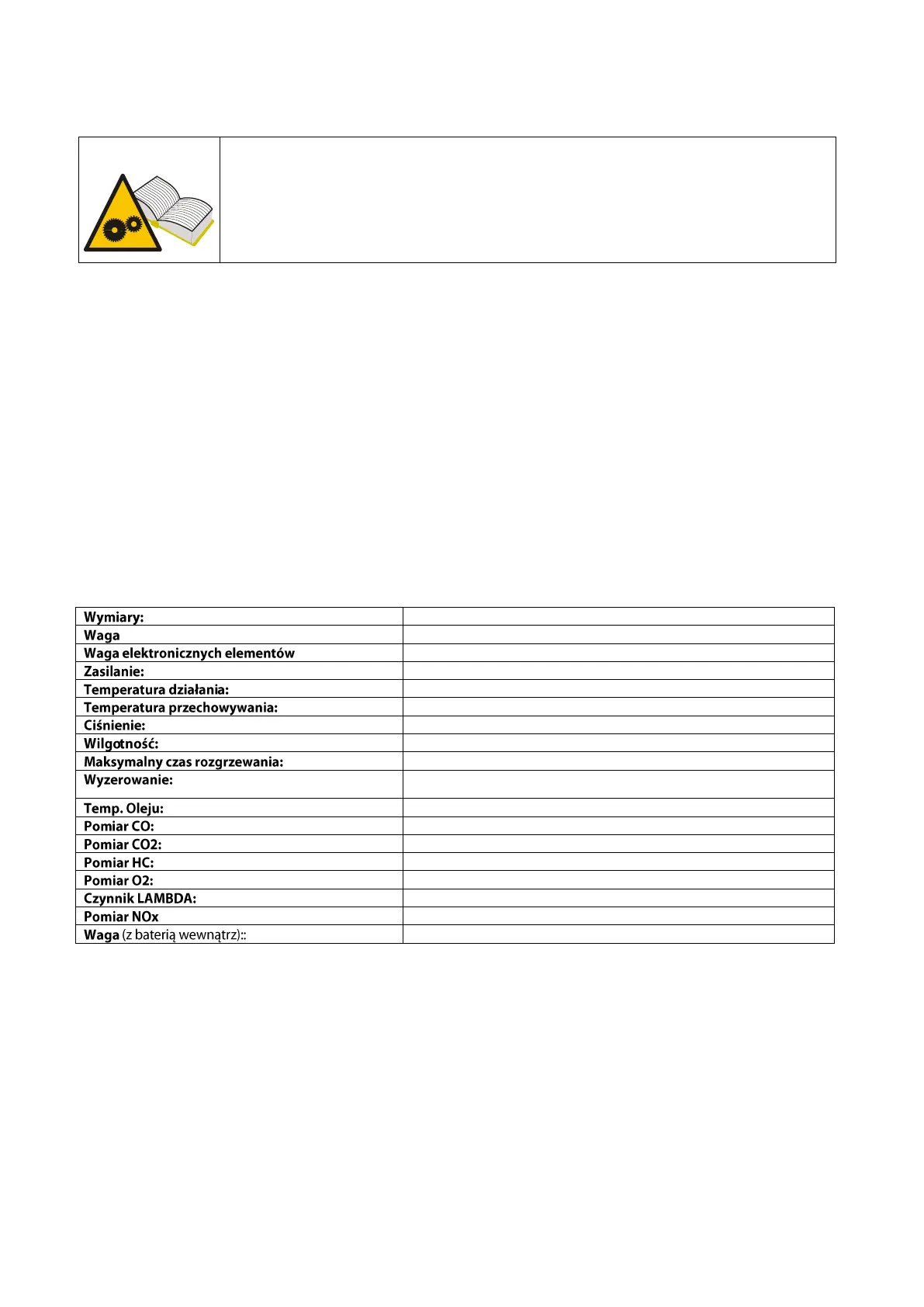 9 Parametry techniczne