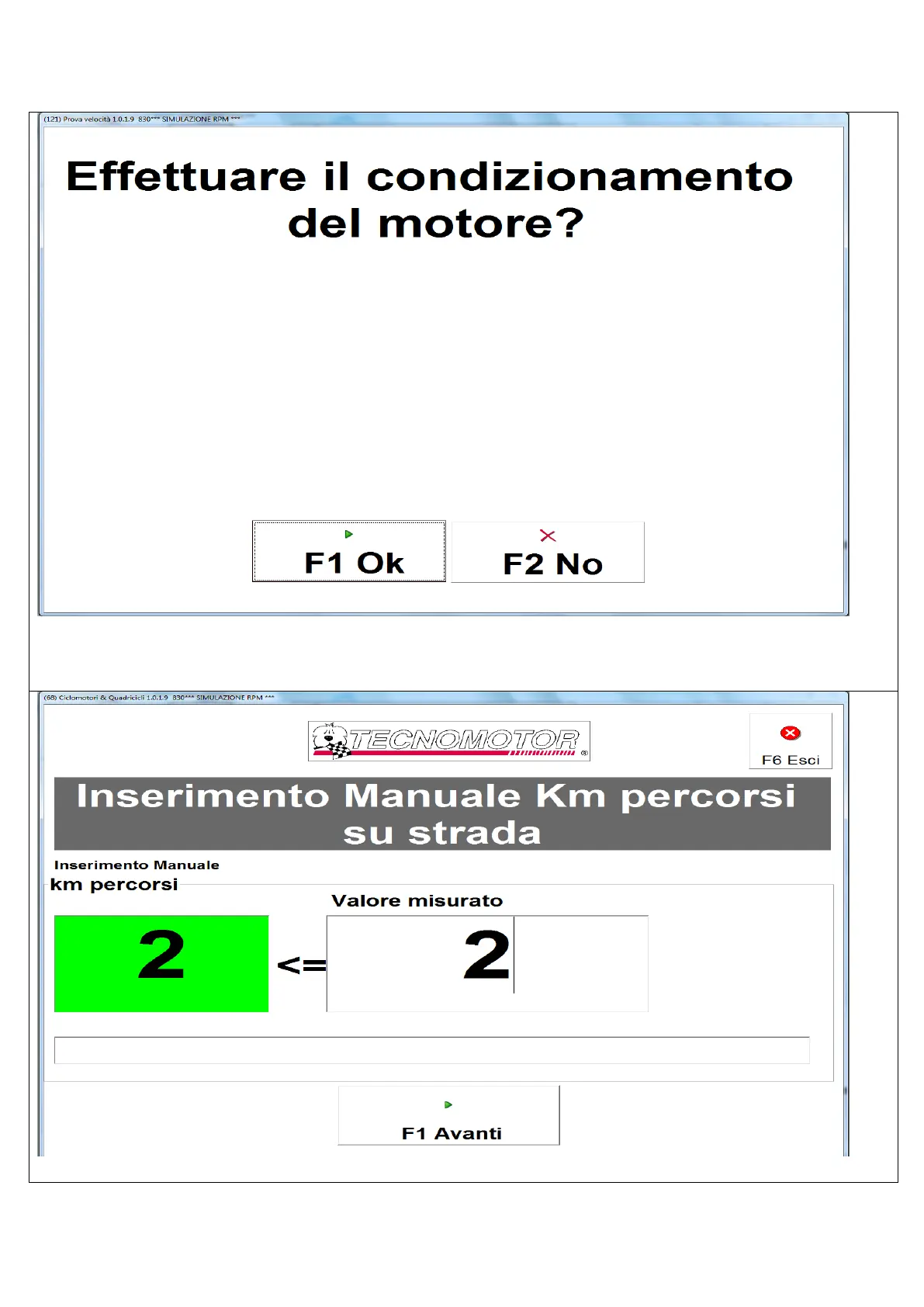 Premendo il tasto F1 Ok si esegue il condizionamento sui rulli altrimenti premendo F2