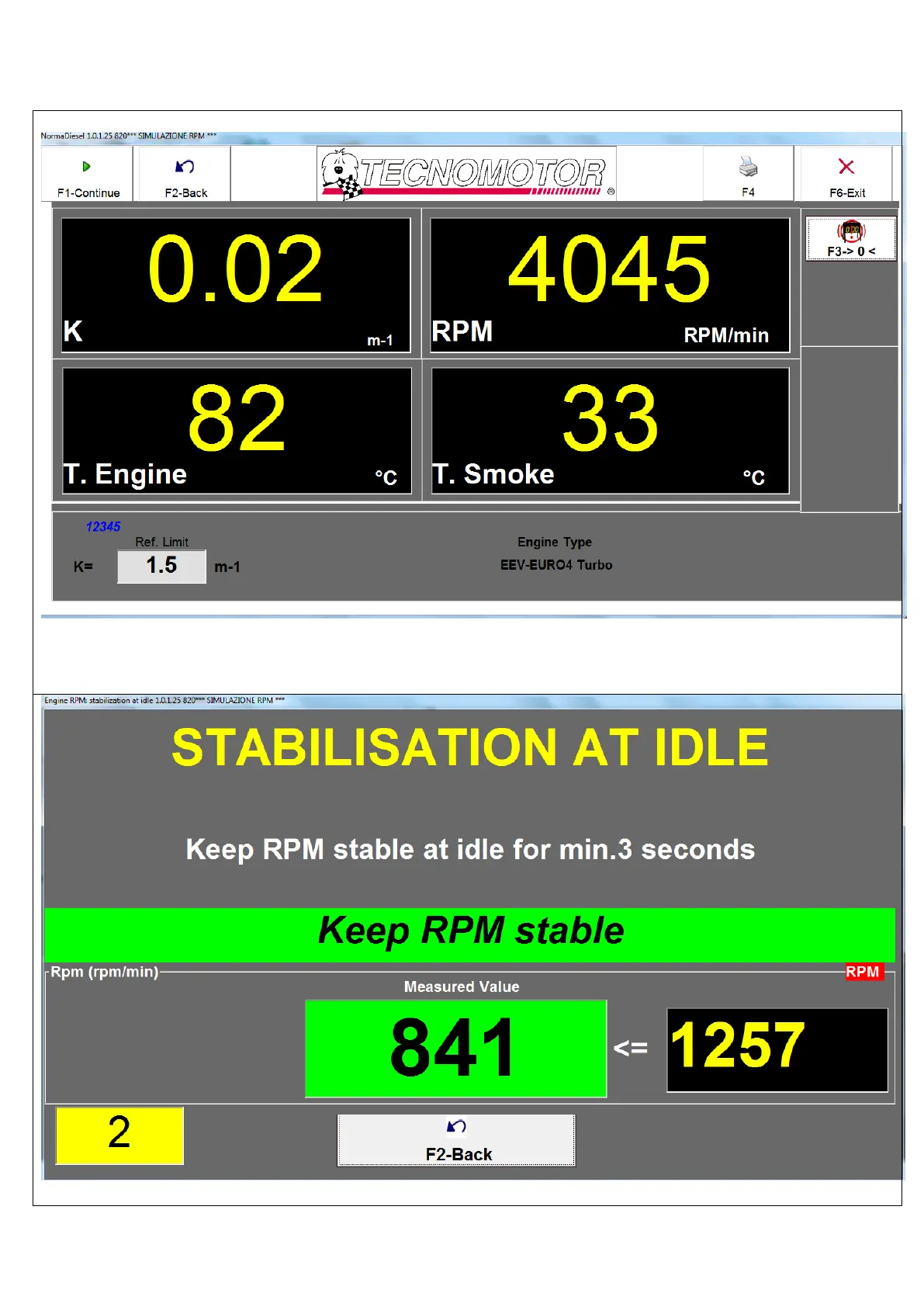 Druk op F1-Continue om verder te gaan met de test.