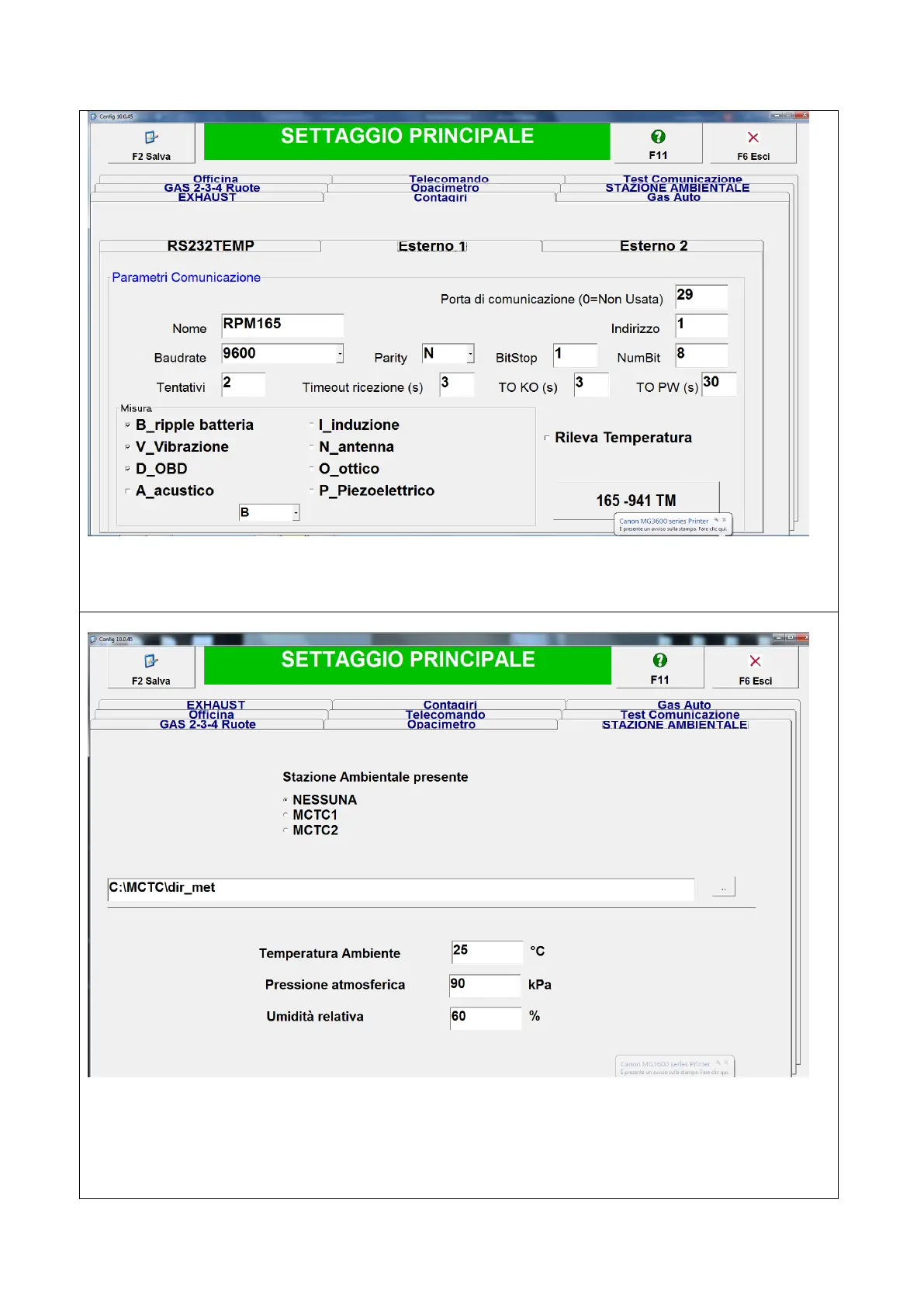 Pagina per configurare il contagiri Rpm Counter e della porta Com di