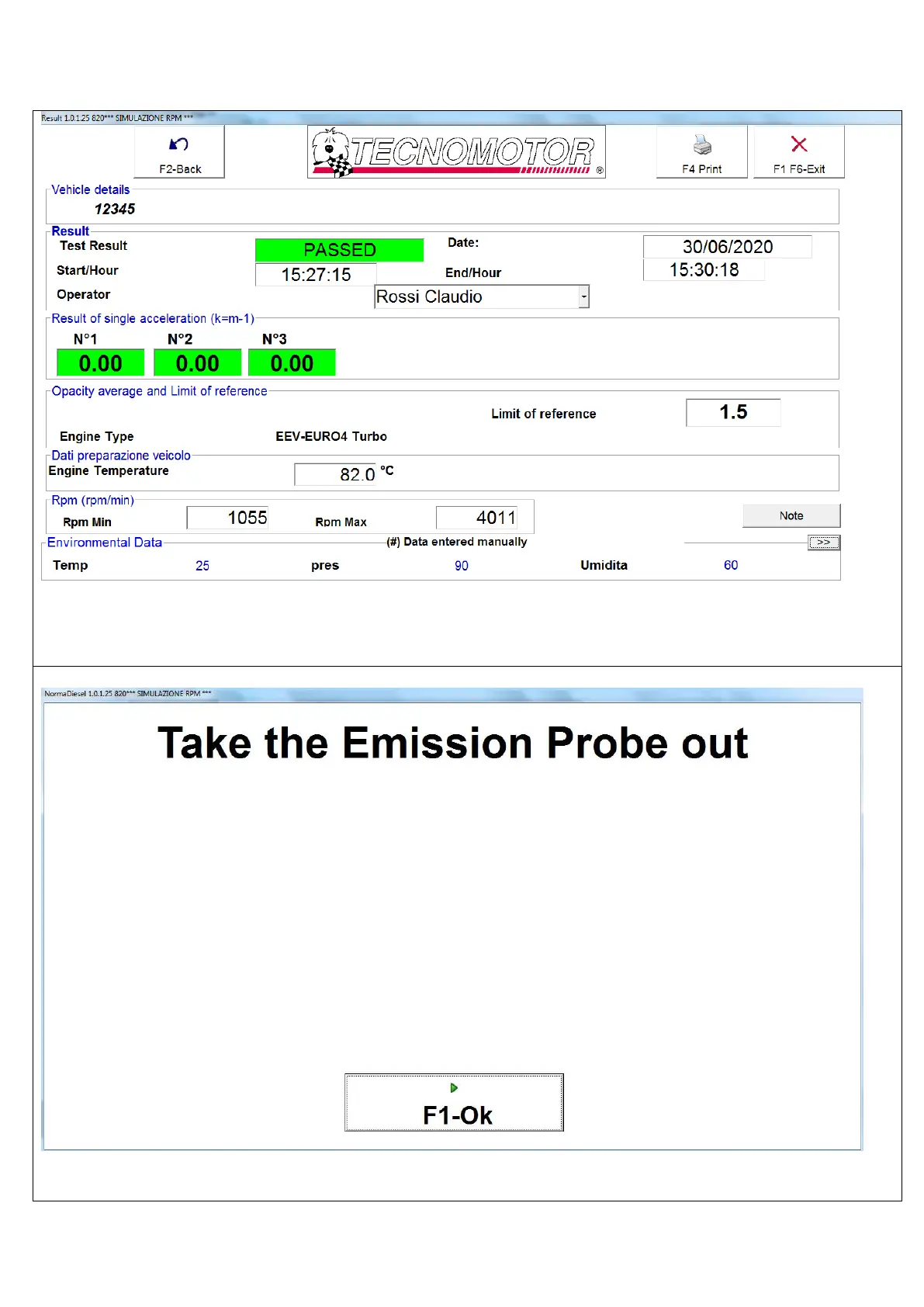 Extraer la sonda del escape del vehículo y presionar F1-Ok