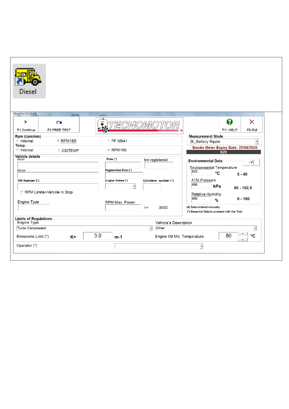 Wprowadzenie danych przez operatora dotyczących pojazdu poddanego badaniu.