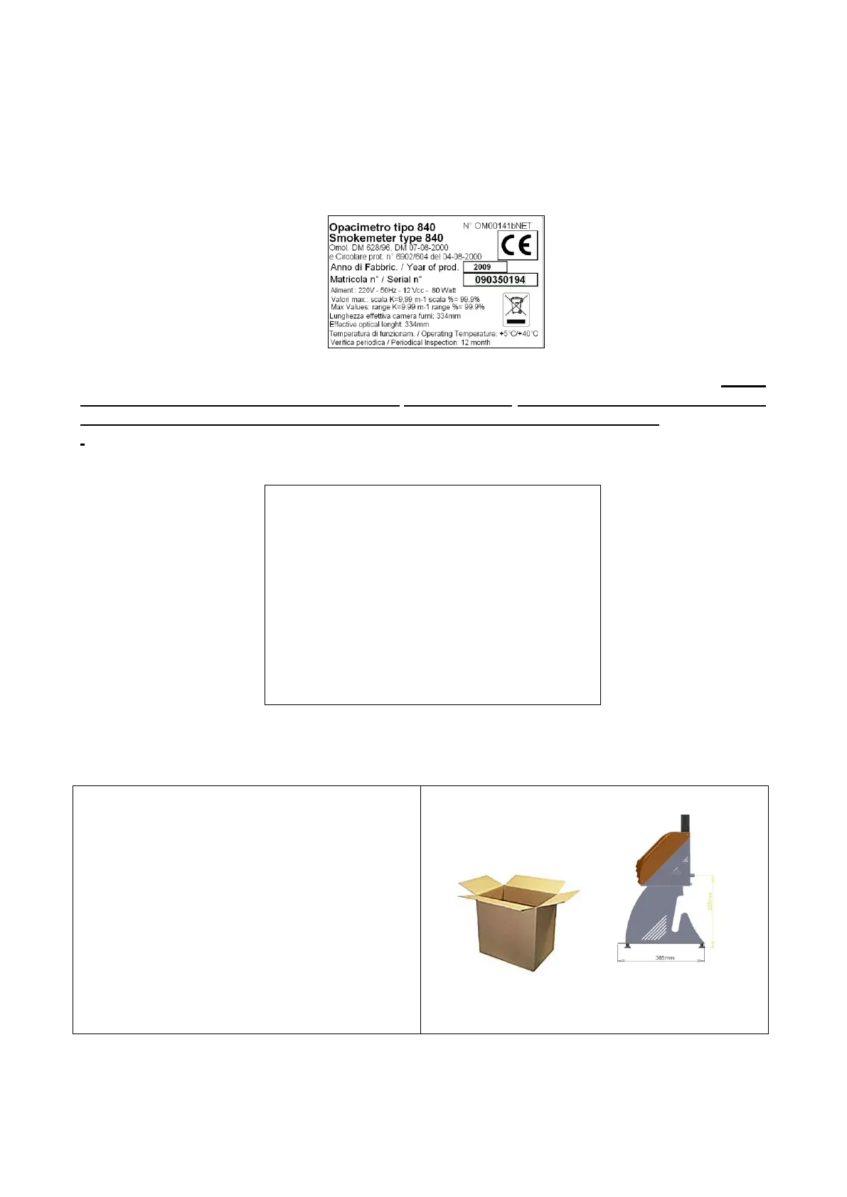 a copy of the instrument identification plate here following.I The user must always refer to the