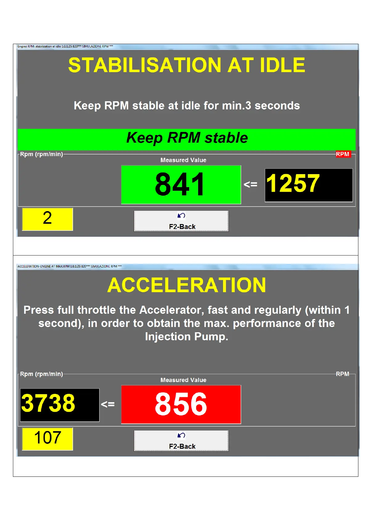 Demande d'accélération et de dépassement des tours affichés sur le moniteur, dans ce