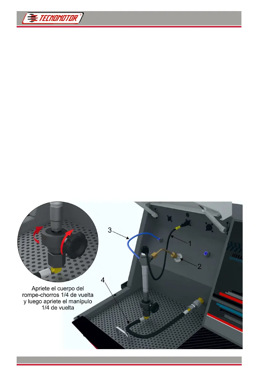El inyector se conecta al equipo por cuatro conexiones: La conexión eléctrica (1),