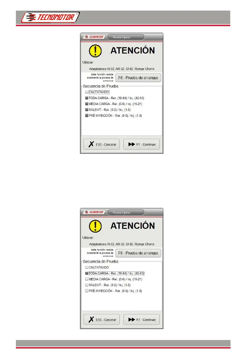 Después del calentamiento, el software iniciará la secuencia de prueba indicada