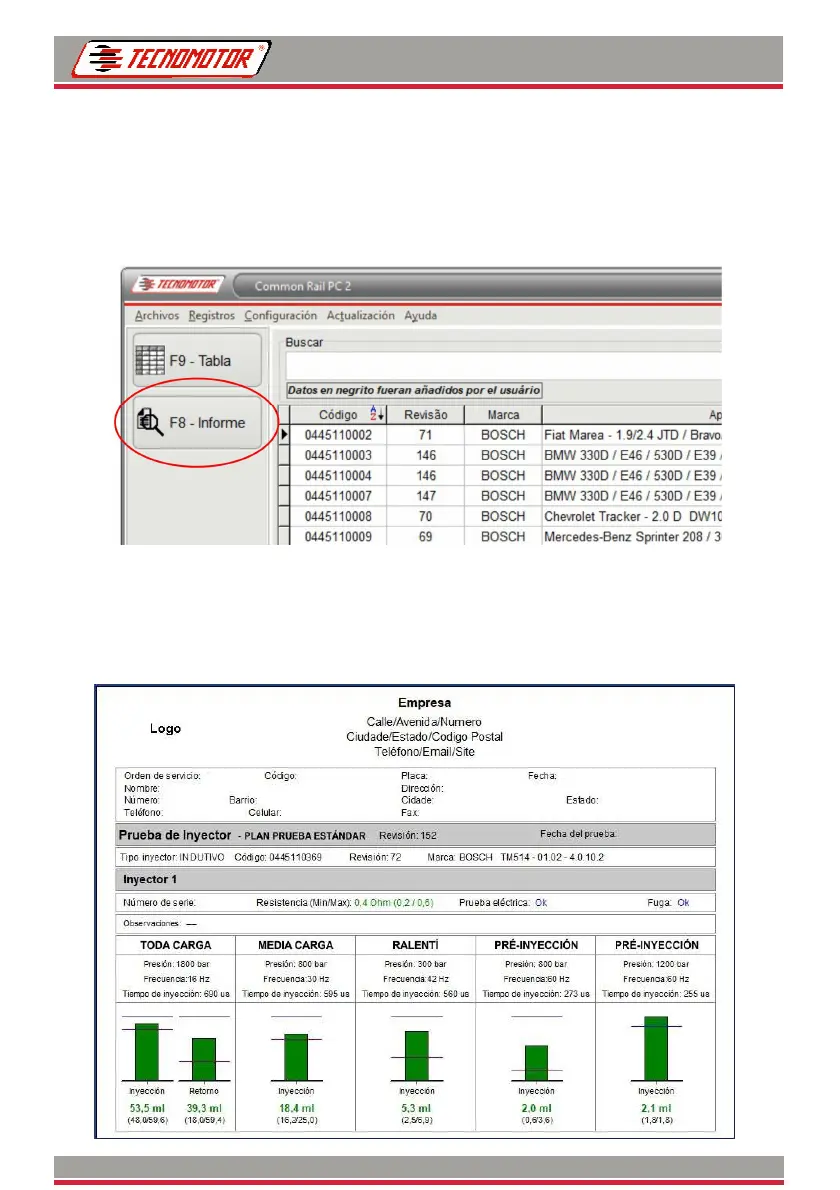 datos estarán disponibles para acceder a través de este botón “F8 - Informe”.
