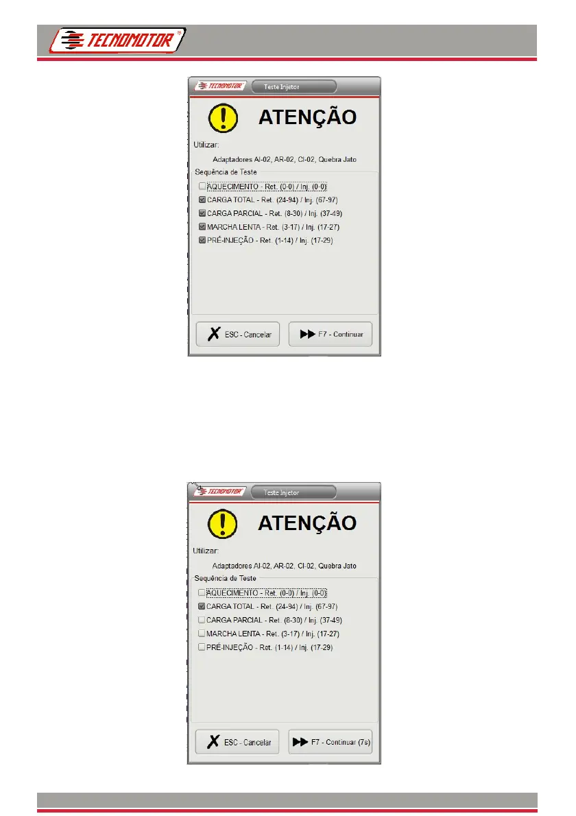Após o aquecimento, o software iniciará a sequência de testes indicada (carga