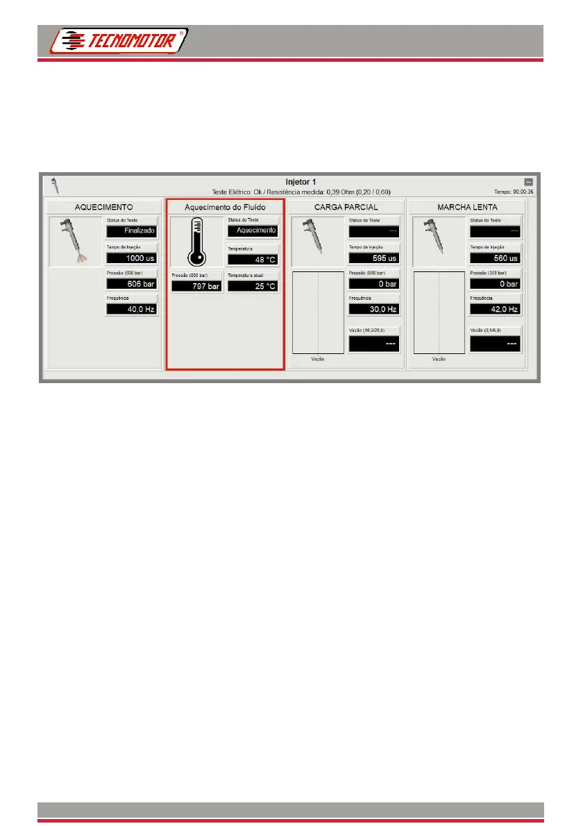 Caso o fluido de teste não esteja na temperatura ideal, o sistema fará com que