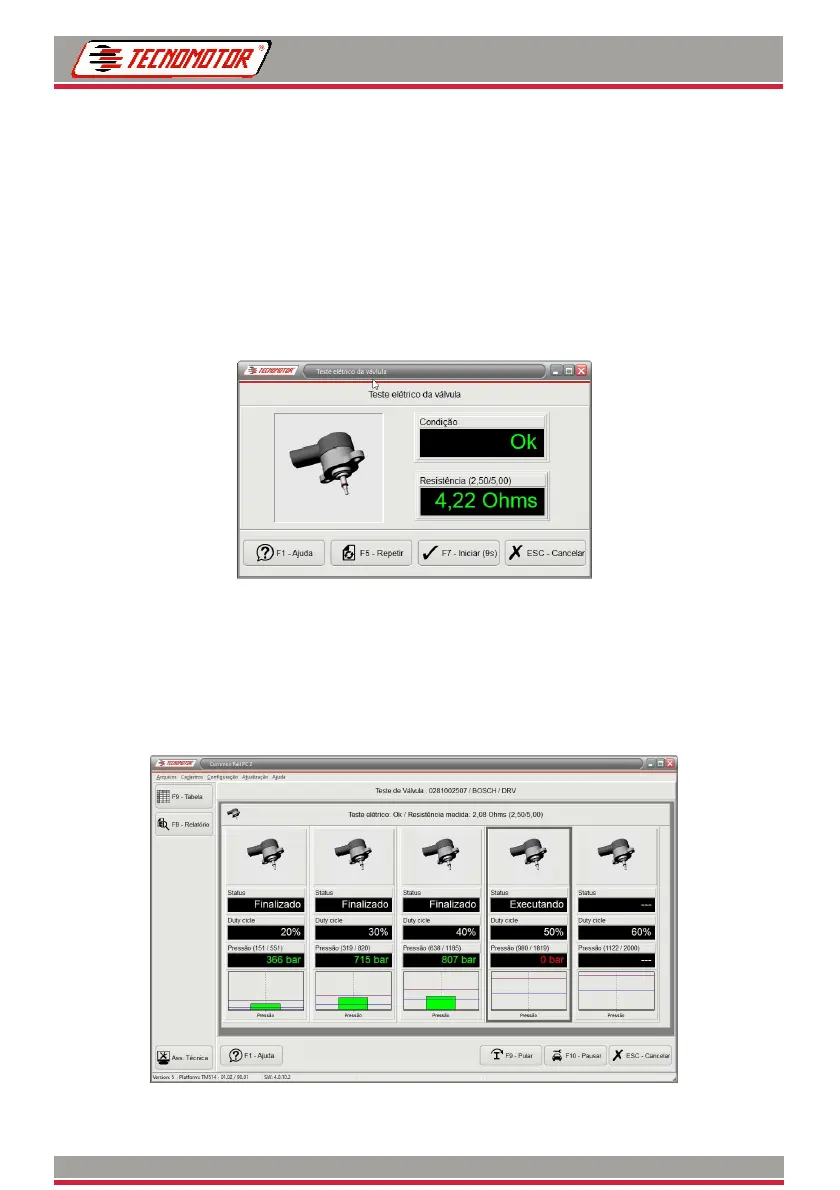 Após o teste elétrico, o software CommonRailPC Fast, irá iniciar o teste