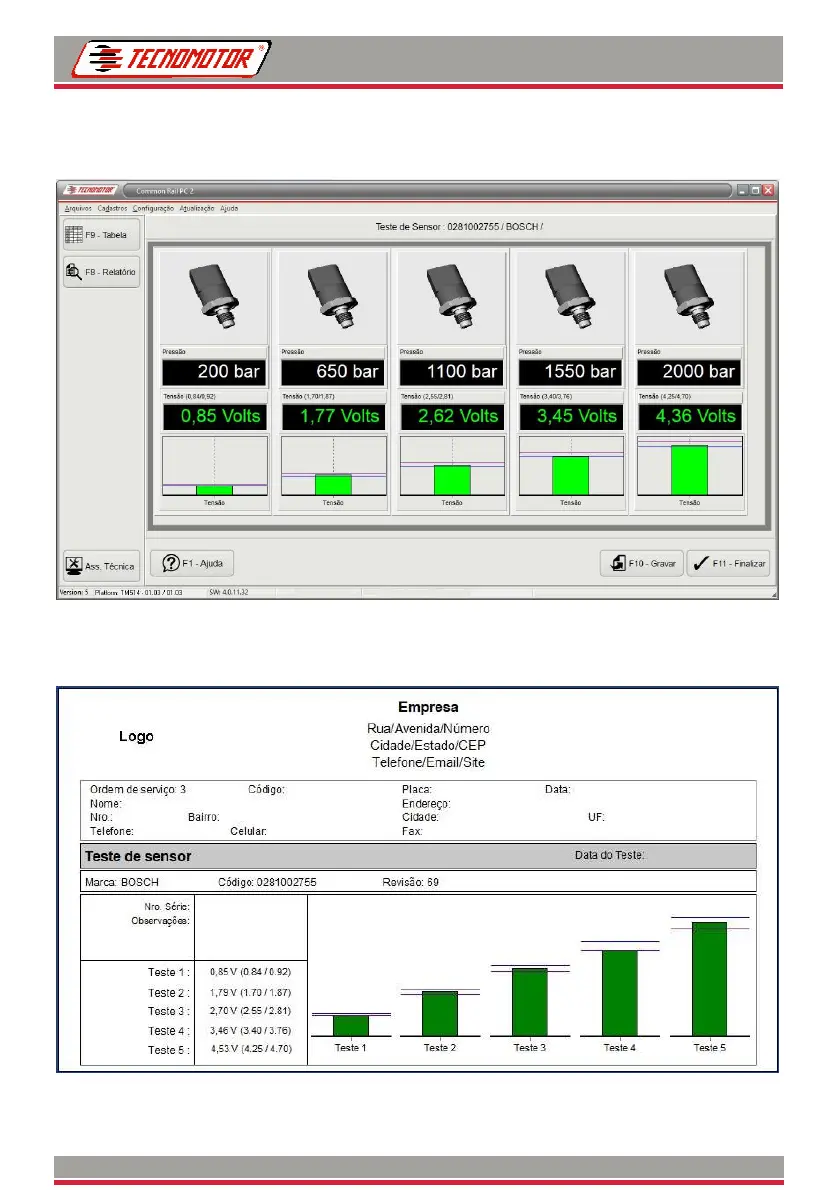 Exemplo de relatório de teste do sensor de pressão.