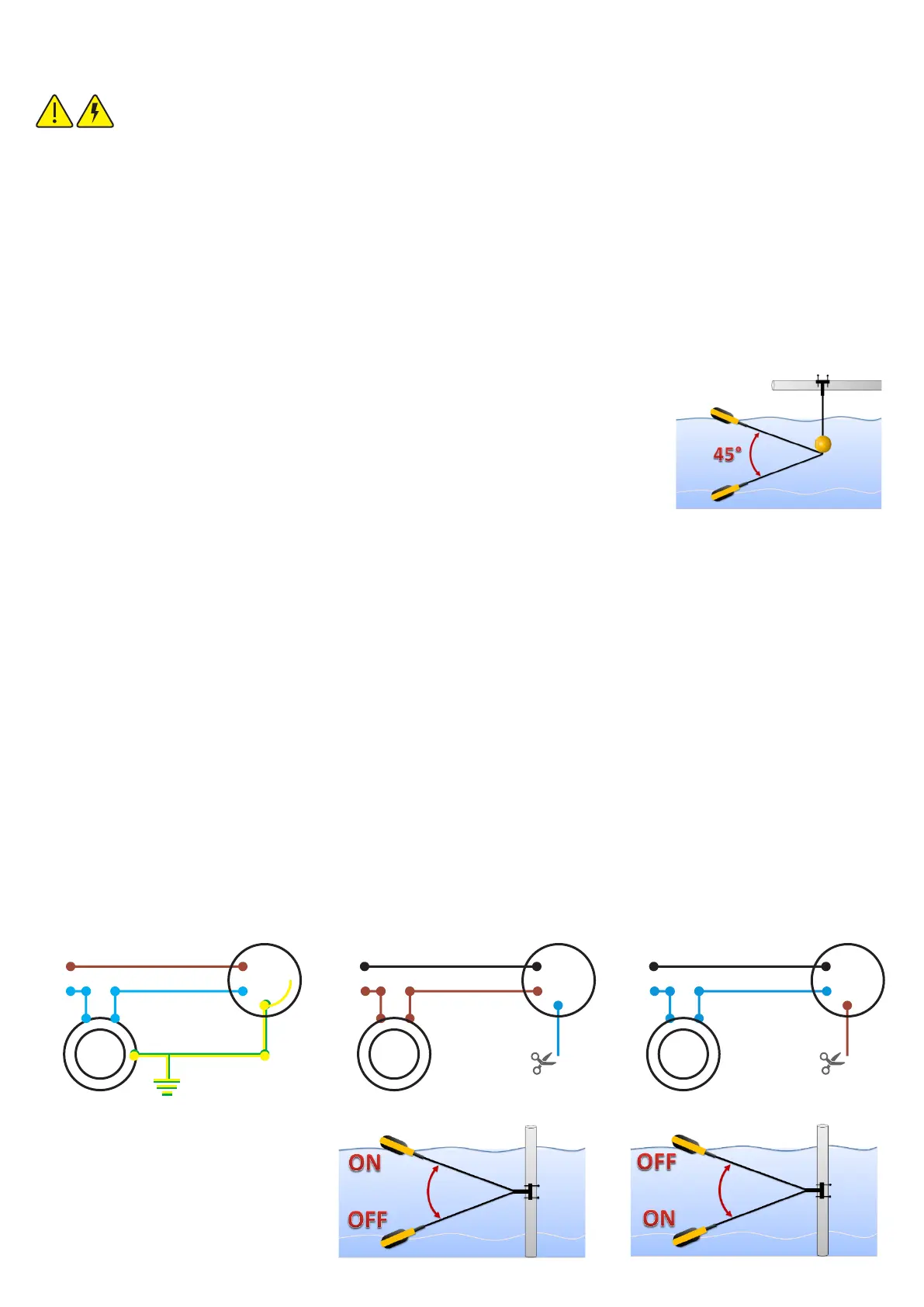 Ÿ Stellen Sie sicher, dass die max. Leistung des Motors die elektrischen Werte des Schwimmers