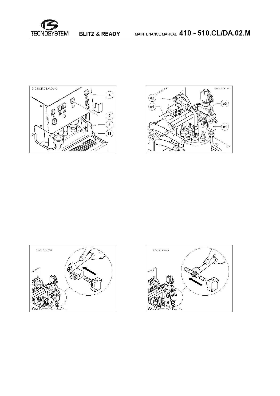 Clean or replace the solenoid valve (e1) as shown on figures 21 and 22.