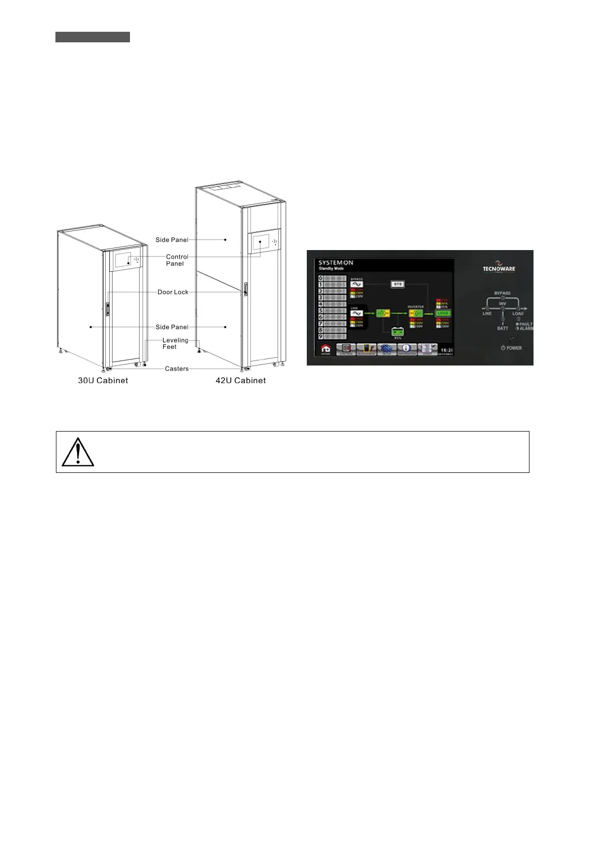 The height of the rack cabinet can be 1475 mm (30 rack unit) or 2010 mm (42 rack unit): it depends on how many