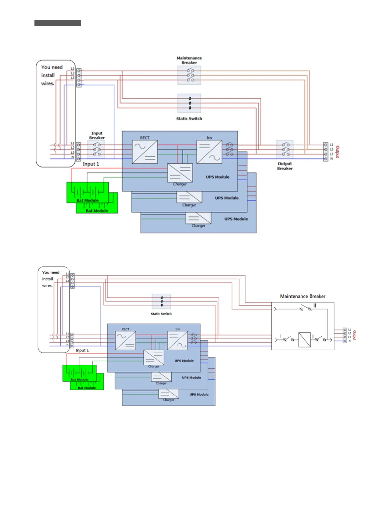 Figure 4.1d Block and Wiring Diagram for single Input (only 300KVA cabinet)