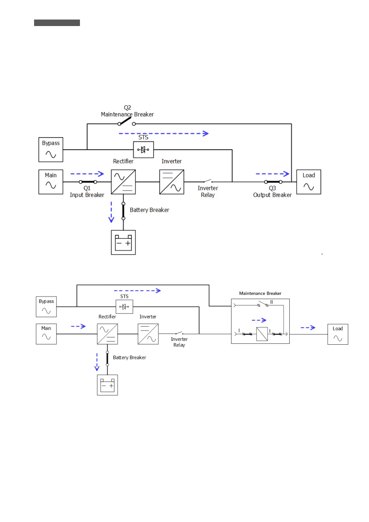Figure 4.5 – Bypass Mode Diagram (up: 80KVA~210KVA cabinet; down: only 300KVA cabinet)