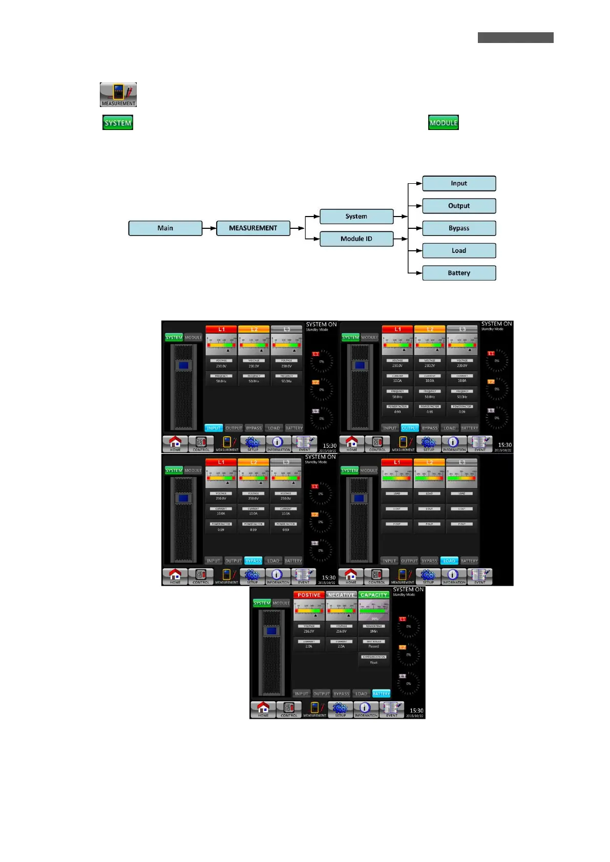 measurement of the Modules. In both cases you can choose to monitor the values of Input, Output, Bypass, Load