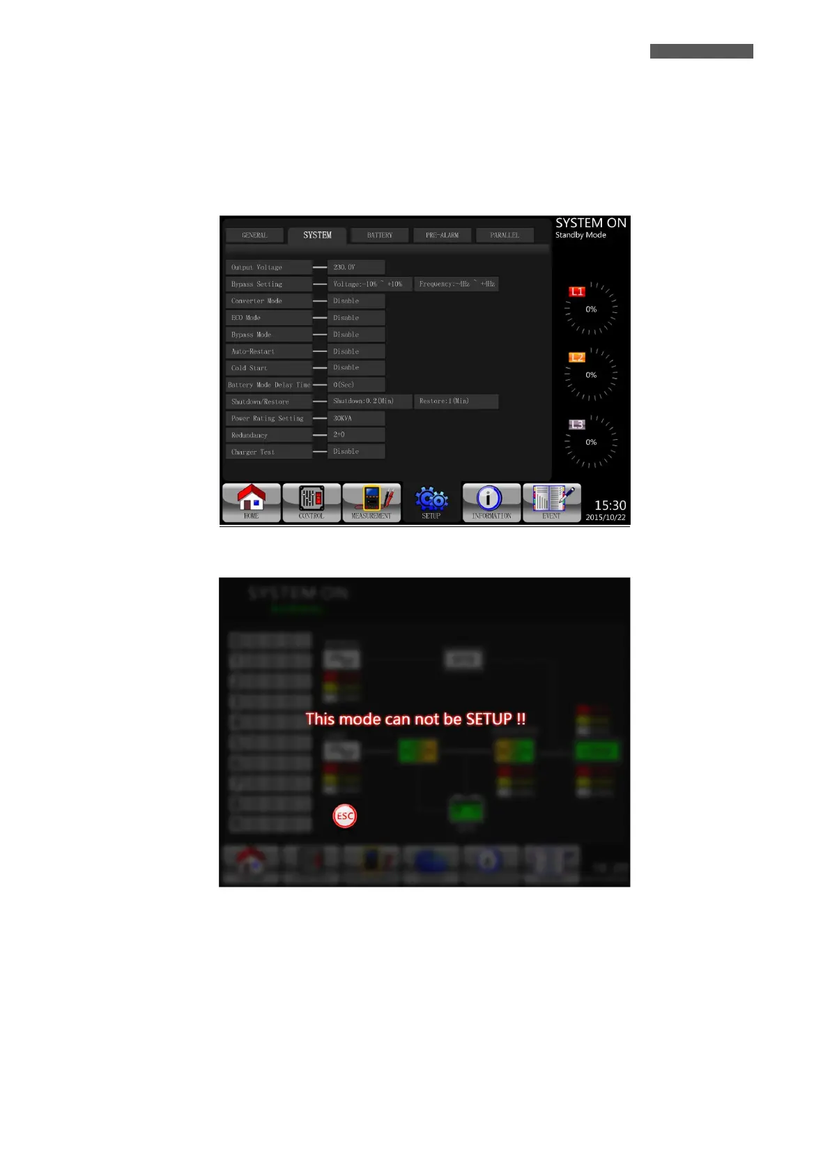 SETUP-SYSTEM Setting can be set only when UPS is operated in certain mode.