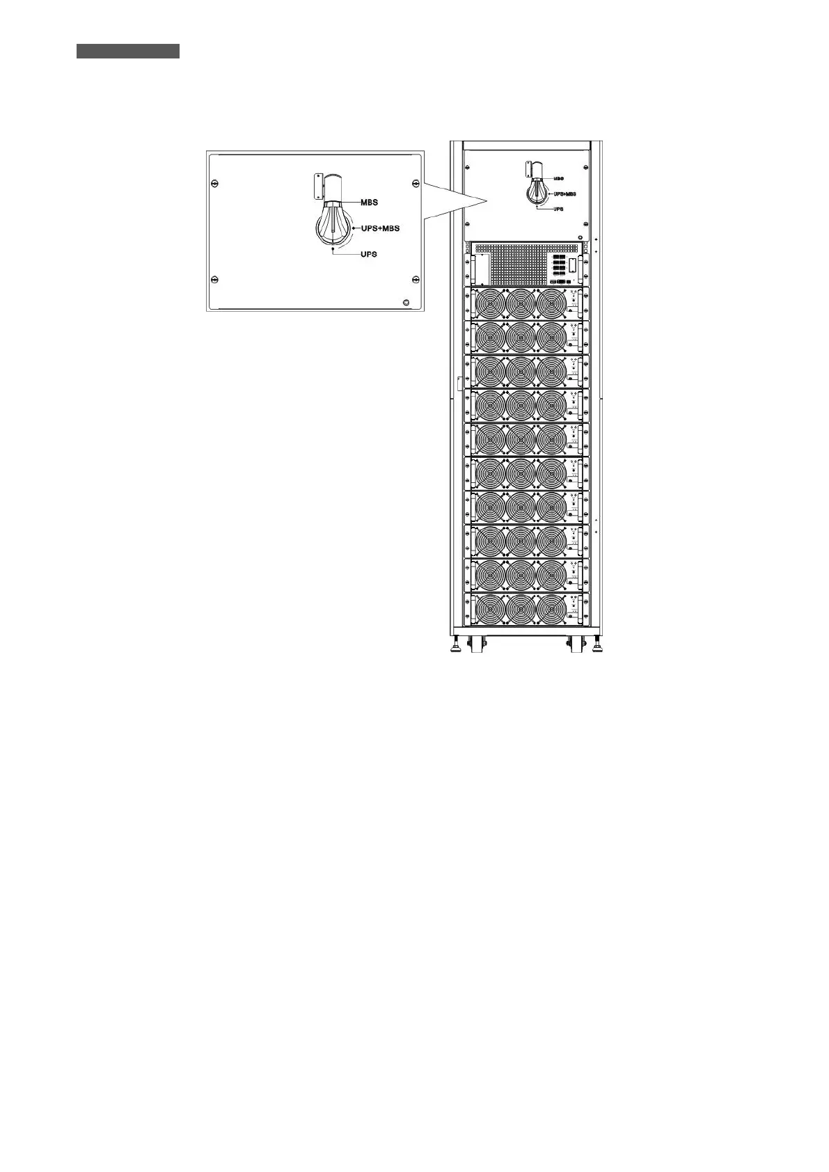 After opening the front door, there is one Maintenance Bypass Switch (only in 300 KVA cabinet)