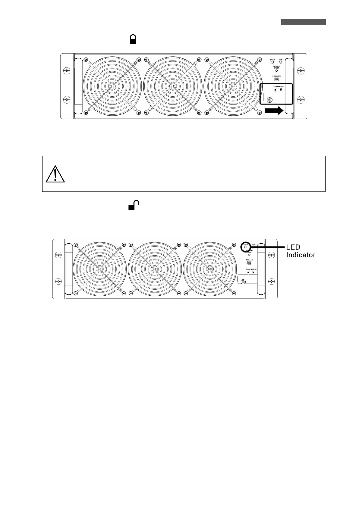 5. Move the Ready Switch to the “ ”( Lock) position, because the Module is Ready to start.