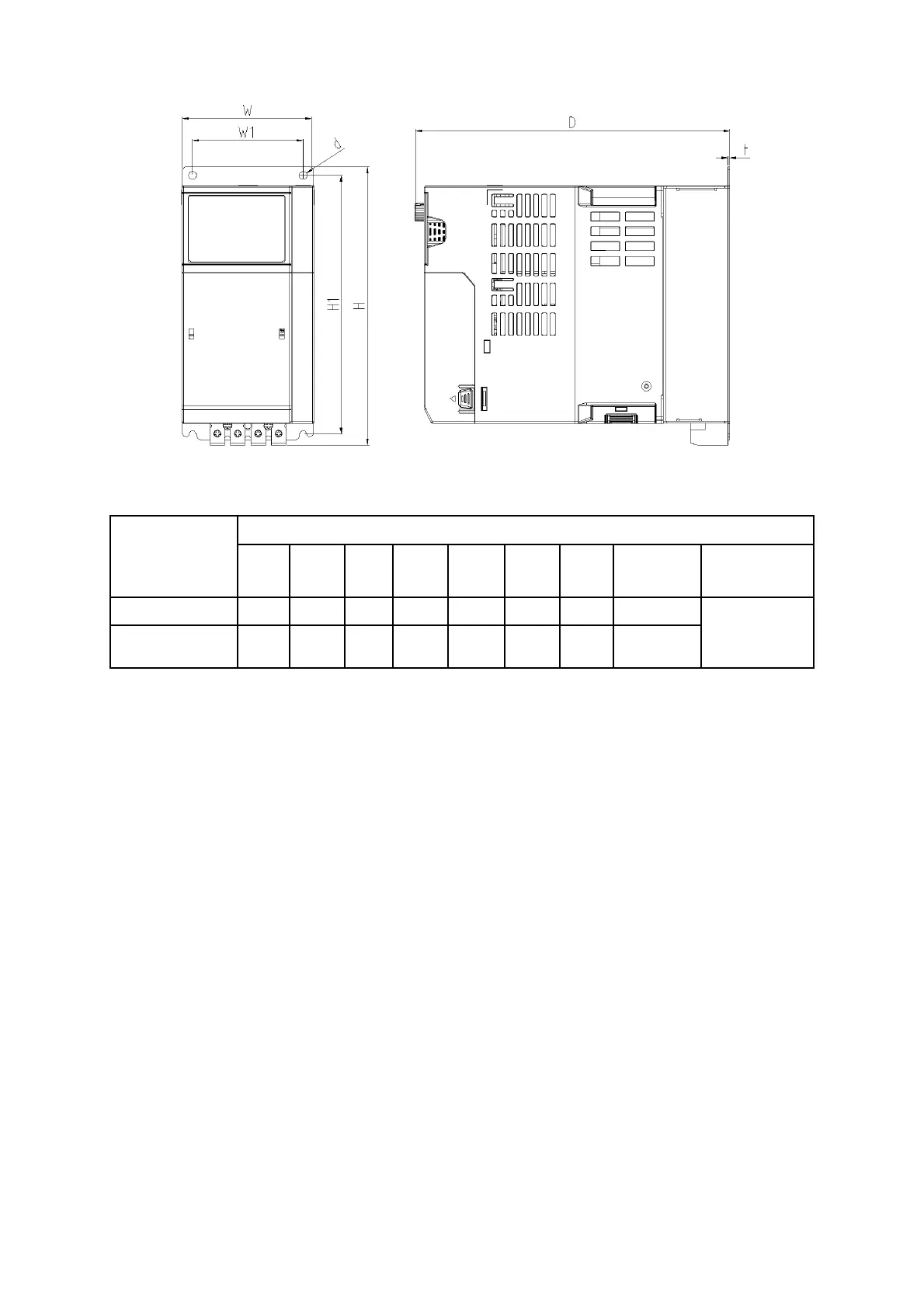 W H D W1 H1 t d