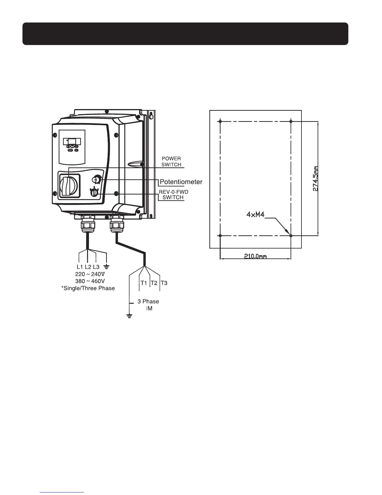 1. Power switch, REV-0-FWD switch and potentiometer are only for NEMA 4X units with operator devices.